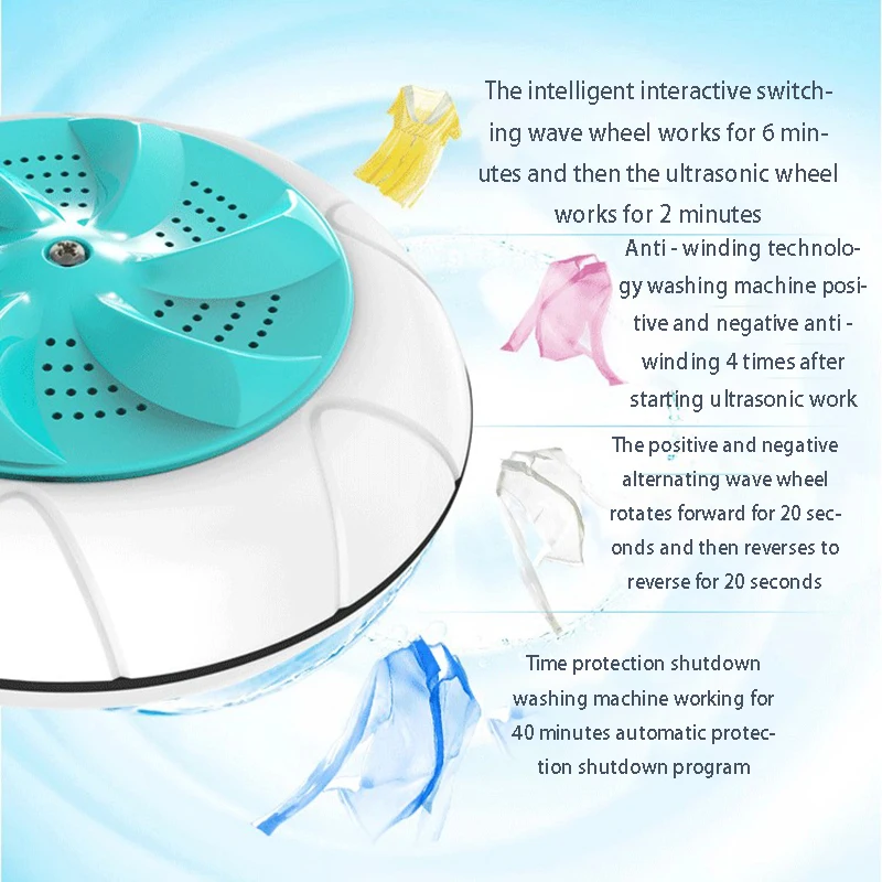 Mini Portable Ultrasonic Vibration Washing Machine Stains Remover USB Ultrasound Laundry Clean Machine Turbine Washer for Travel