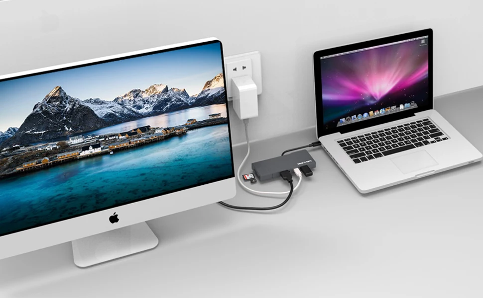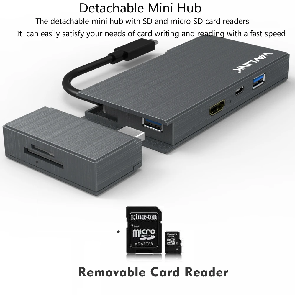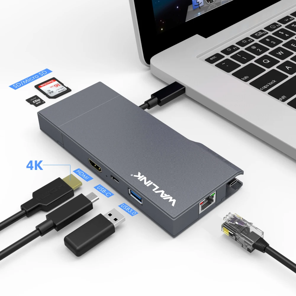 Док-станция Wavlink USB C Hub 4K HDMI, мини-адаптер типа C 7 в 1 с зарядкой 60 Вт PD, RJ45 Gigabit Ethernet,USB 3,0, съемный считыватель sd-карт для ноутбуков MacBook Pro и Type-C, Windows * 1) многорежимная мини-док для путешествий, с возможностью подключения к мобильному телефону, с возможностью подключения к мобильному телефону Портативный видеоадаптер Wavlink позволяет подключаться к ноутбуку Macbook Pro или USB C, расширяя 4K HDMI, порт для зарядки Type-C, 2 порта USB 3,0, 1000 Мбит/с RJ45 Ethernet-порт, слот для SD и tf-карты. Уникальный дорожный дизайн для ноутбука, чтобы доставить несколько портов на самый маленький размер. * 2) Поддержка разрешения UHD 4K при 30 Гц Встроенный в один другой HDMI V1.4 (4K при 30 Гц) через USB3.1 (Альтернативный режим VESA) видеовыход поддерживает разрешения 4K. Видео Full HD 1080p для HDTV, монитора или проектора. Это значительно поможет вам улучшить работу с высоким разрешением, графически интенсивными изображениями, редактирования видео, Сап-рисунков, медицинских образов и многого другого. * 3) Питание до 60 Вт, USB C Порт для подключения к ноутбуку, работающий от сети, обеспечивает быструю зарядку при использовании других портов. (Адаптер питания не входит в комплект). Поддержка Mac OS, ОС Windows, для всех новых ноутбуков Type-C, имеет полнофункциональный USB3.1. * 4 ) RJ45 Gigabit Ethernet и USB 3,0 порт Встроенный 10/100/1000base-t гигабитный Ethernet RJ45 f, проводные сетевые соединения быстрее и надежнее, чем любой Wi-Fi. Сверхскоростные порты USB 3,0 обеспечивают скорость передачи данных до 5 Гбит/с. * 5) компактный и современный новый дизайн Съемный мини-хаб с картридером SD и micro SD, UHP3406 может легко удовлетворить ваши пожелания в области письма и чтения карт с быстрой скоростью.
