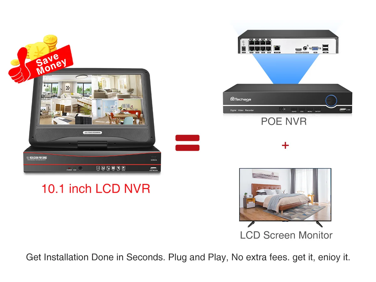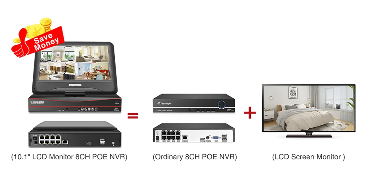 ЖК-экран POE NVR = ЖК-экран монитор + POE NVR