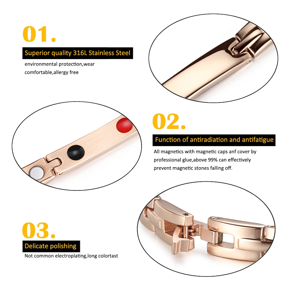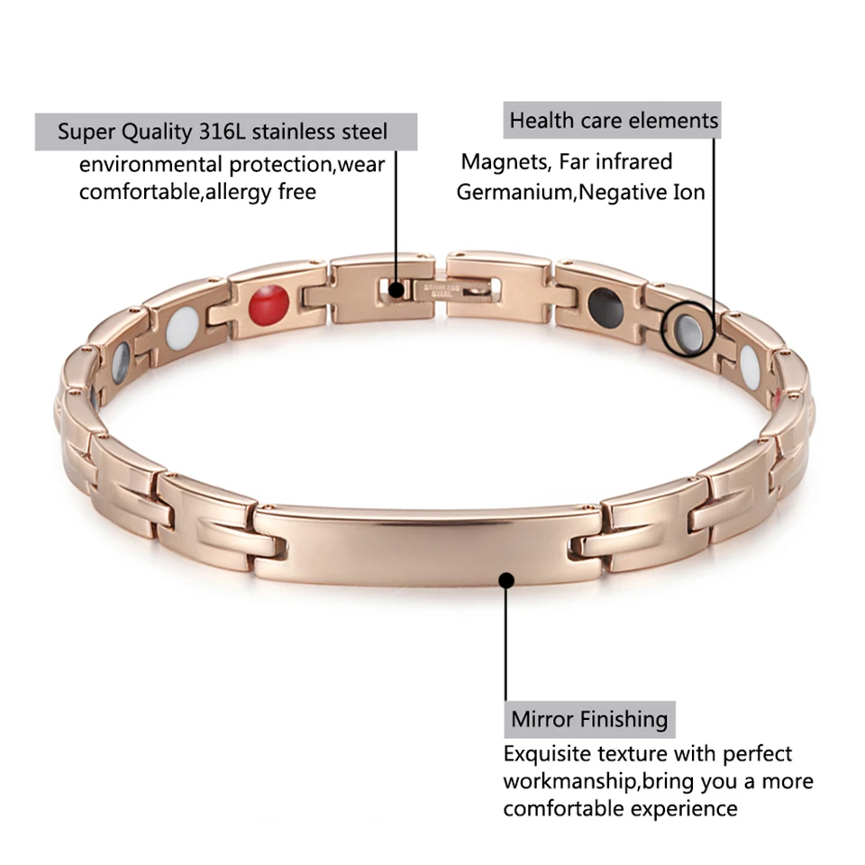 Материал Нержавеющая сталь с магнитами, магнитные, пихта, германий Размеры/Длина 20,4 см/шт. (6,5-8,5 "/pc) Вес Около 40 г/шт. Ширина 7 мм(0,24 ") Искусство или Мода Модный браслет из нержавеющей стали Цвет Красное золото/серебро Рынок ЕС, США, Австралия и так далее Пол Женщина, мужчина, унисекс, влюбленные Упаковка Электростатическая пленка/мешок opp Продвижение Каждый год несколько стилей с ценой 30-50% вниз