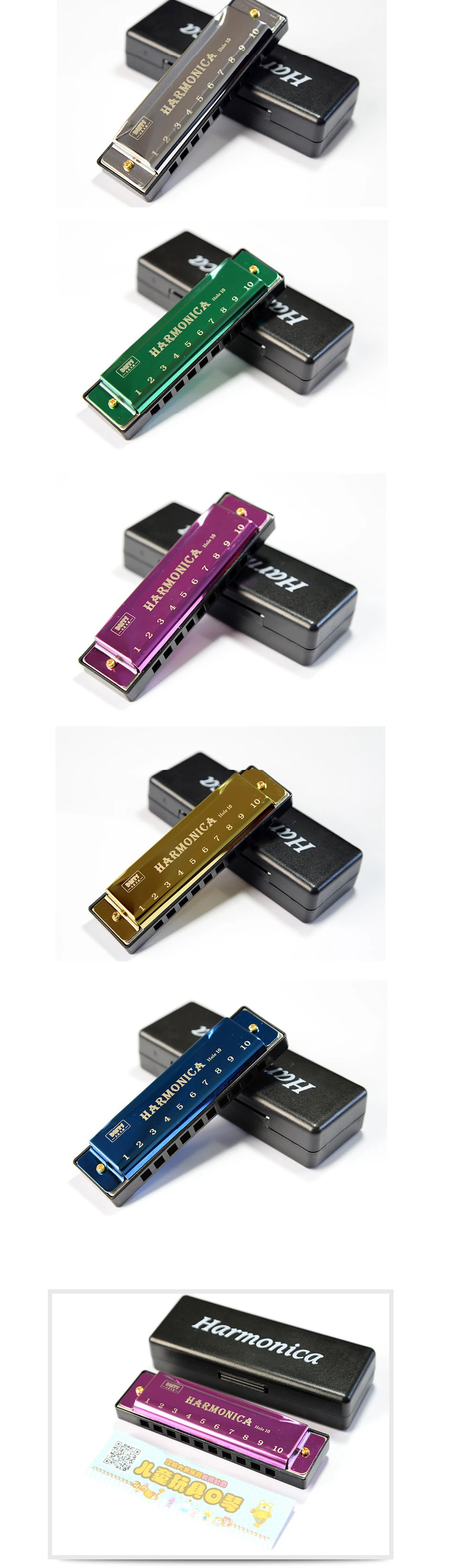 В каждом звуковом отверстии есть два тростника, каждое из звуковых отверстий может издавать два звука (всасывать и дуть), поэтому есть 20 тонов. Число на корпусе гармоники (1-10) повторяет шаг, чем больше количество, тем больше шаг. Просто выдуйте или Сосите отверстие с номером на harnonica, это очень легко для всех.