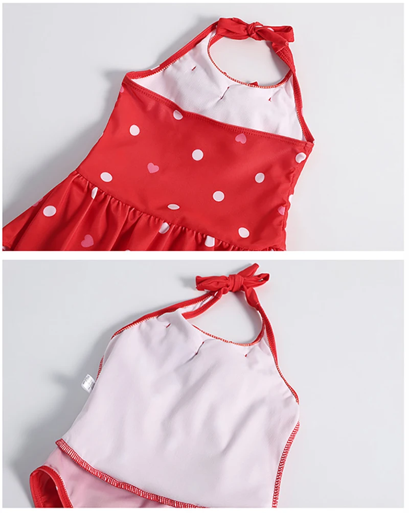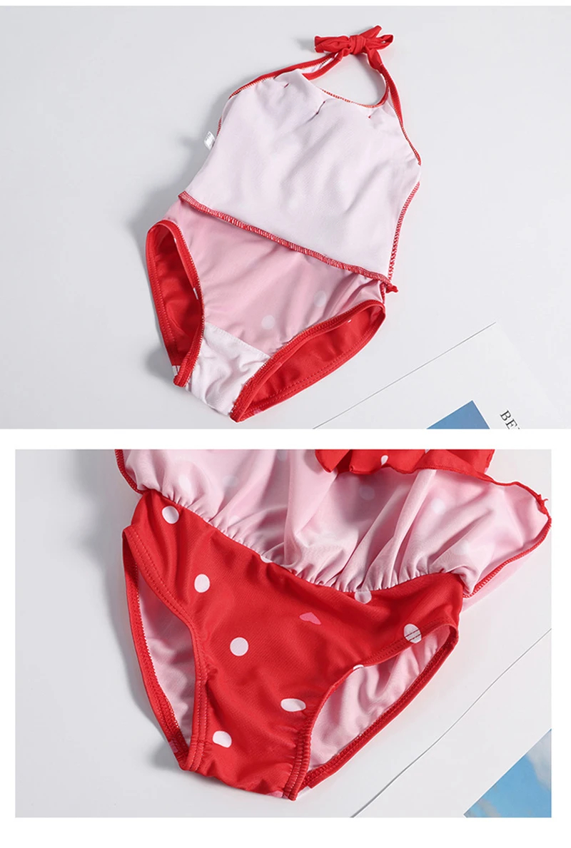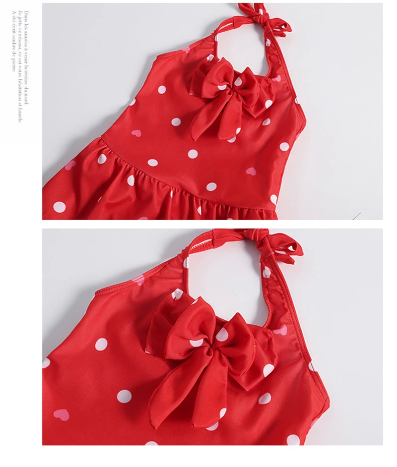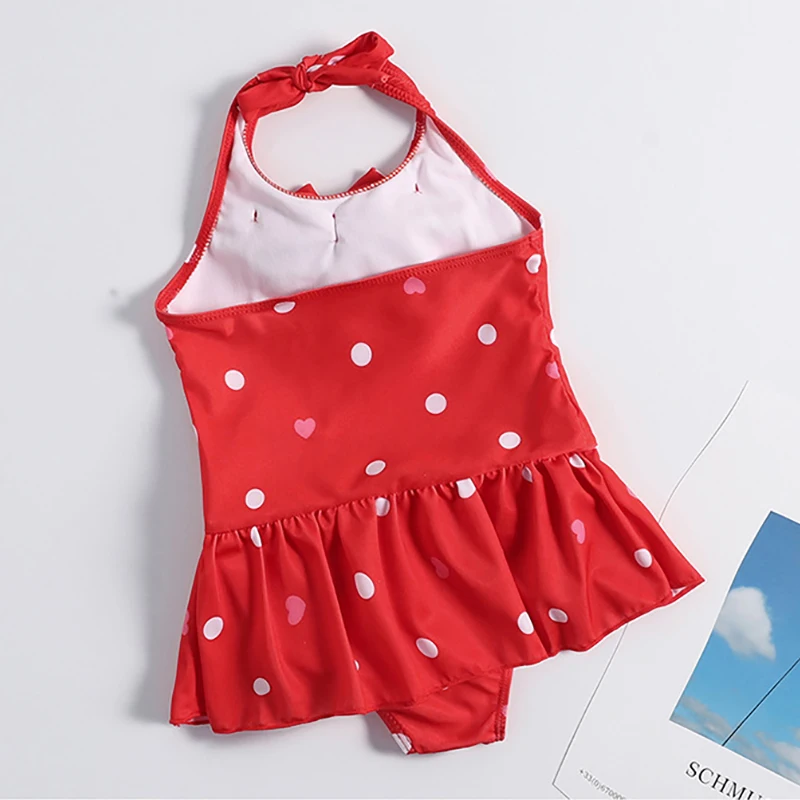 Купальный костюм для маленьких девочек, юбка, купальный костюм, цельный купальный костюм для детей, костюмы для плавания красного и темно-синего цвета для девочек, Пляжная Спортивная одежда для плавания, принт в горошек