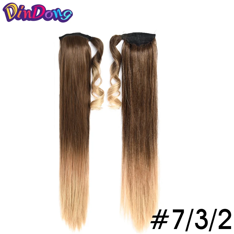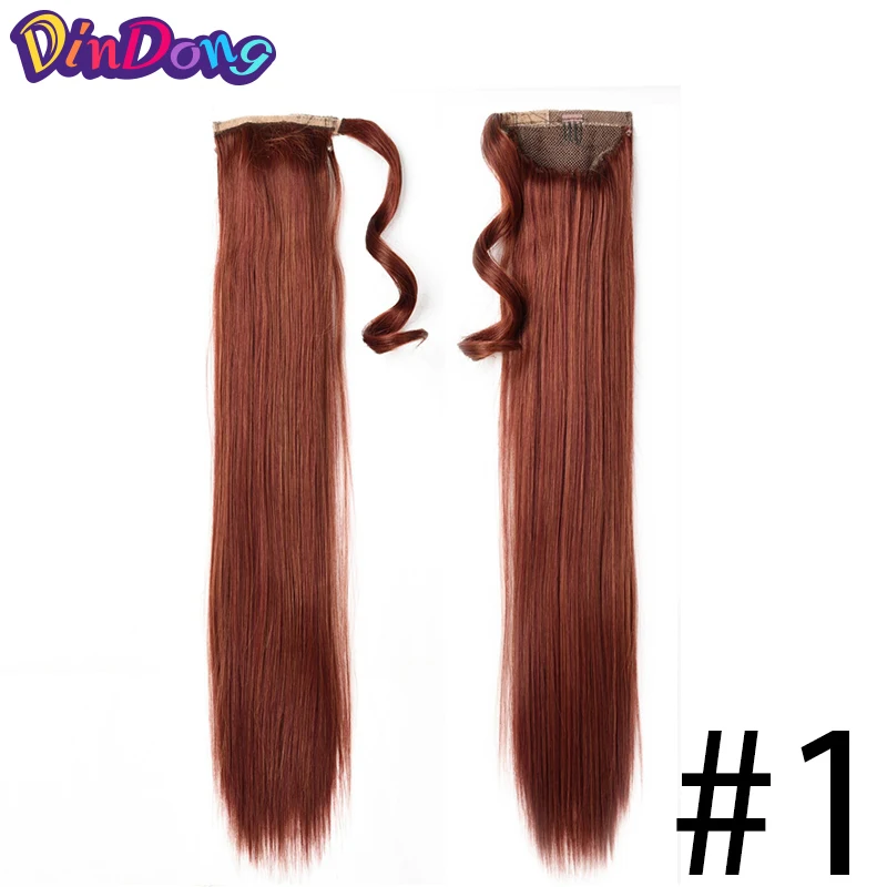 DinDong, 24 дюйма, прямые, на застежке, на шнурке, конский хвост, синтетическая обмотка вокруг конского хвоста, волосы для наращивания