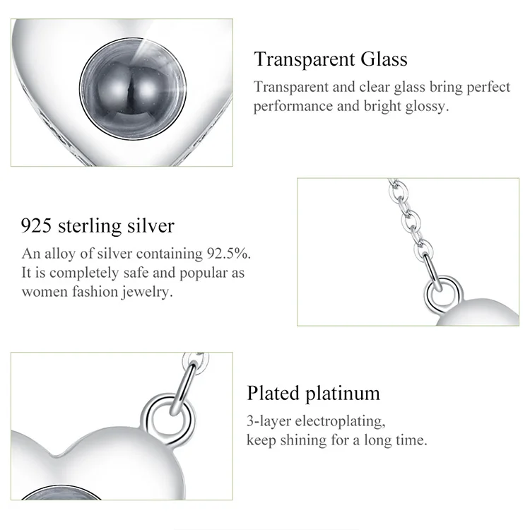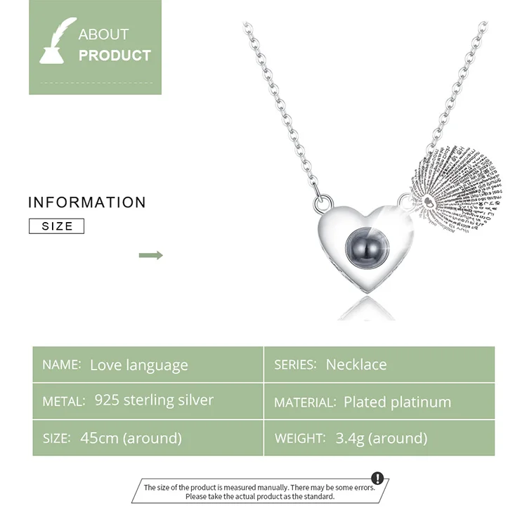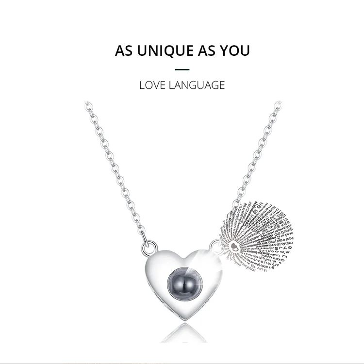 Модные ожерелья из стерлингового серебра 925 пробы с цепочкой для женщин, 100 языков, ожерелье с сердцем I Love You, подарок на день рождения для женщин BSN143
