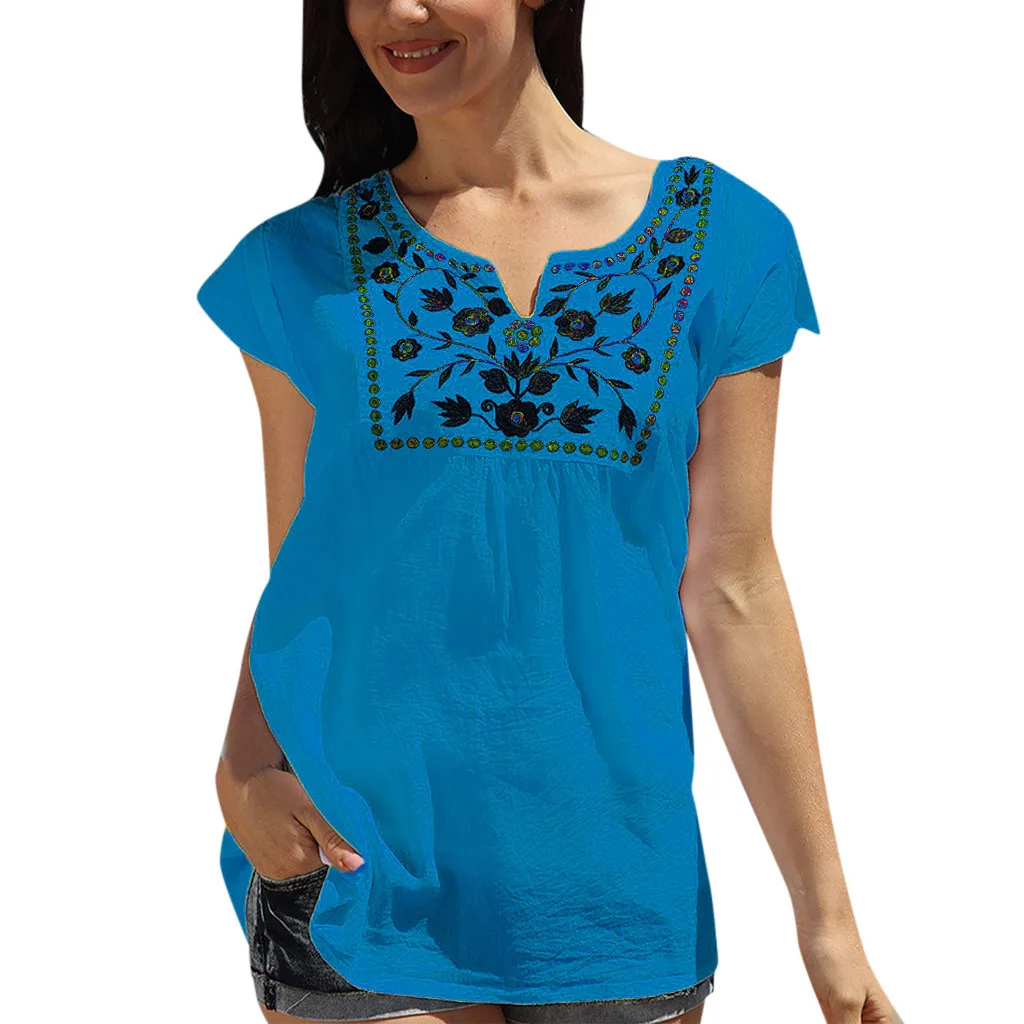 Women Fashion Casual Short Sleeve V-neck Solid Short Tops T-Shirt Blouse