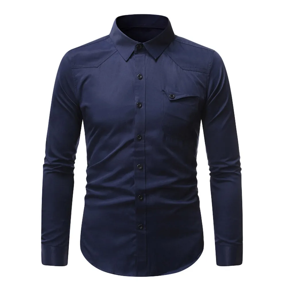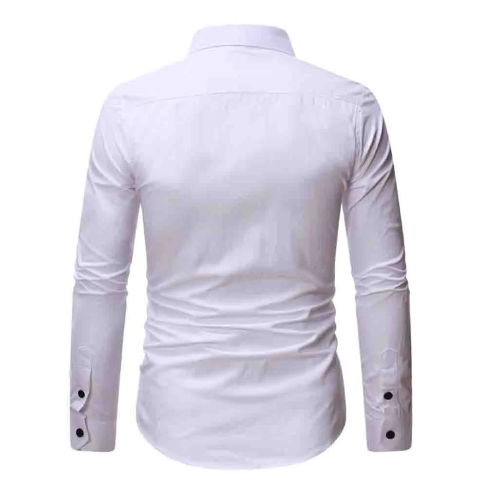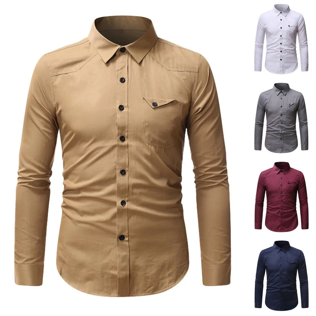 Модная мужская Тонкая свободная футболка с длинным рукавом и отложным воротником