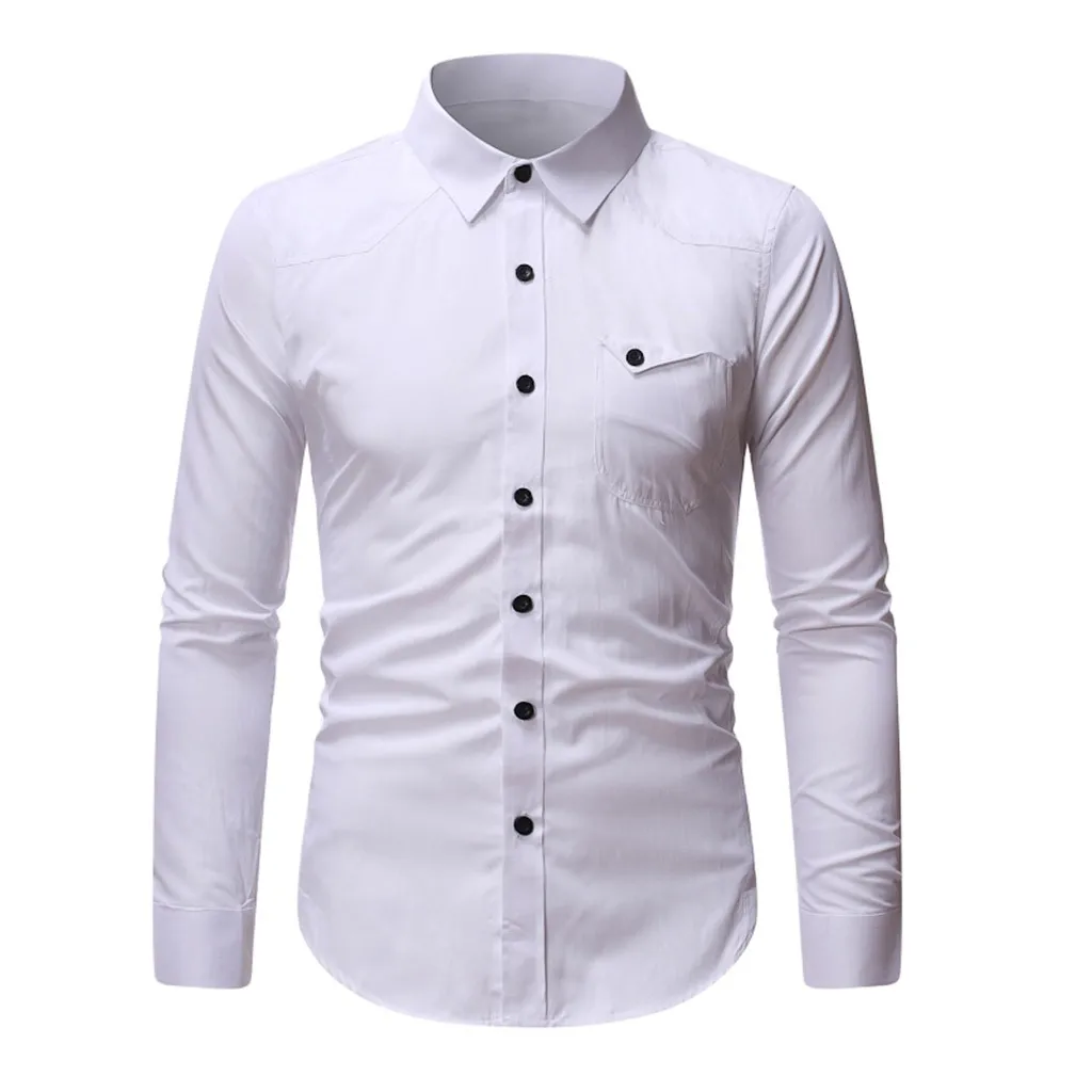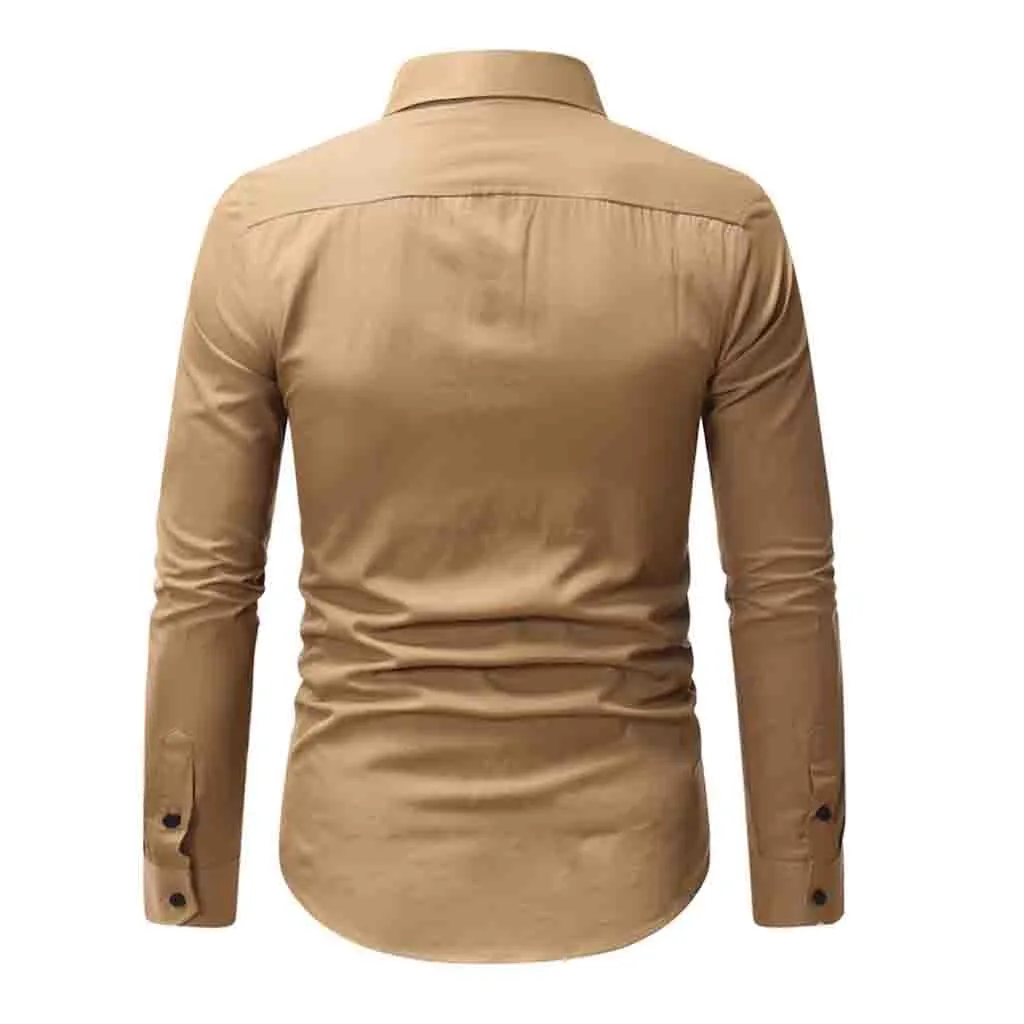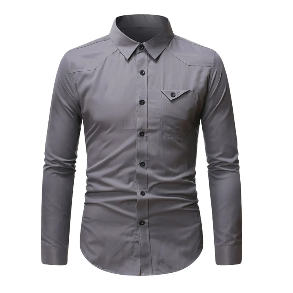 Модная мужская Тонкая свободная футболка с длинным рукавом и отложным воротником