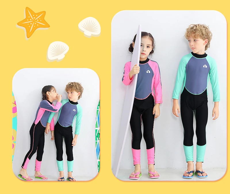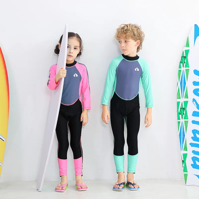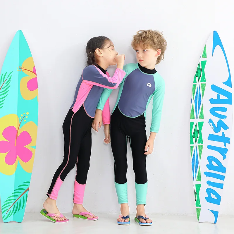 Swimsuit Long-sleeved Pants Kids Girls Sports Siamese Hat Sunscreen Quick-drying Swimming Suit Spring Boys And Girls Swimwear