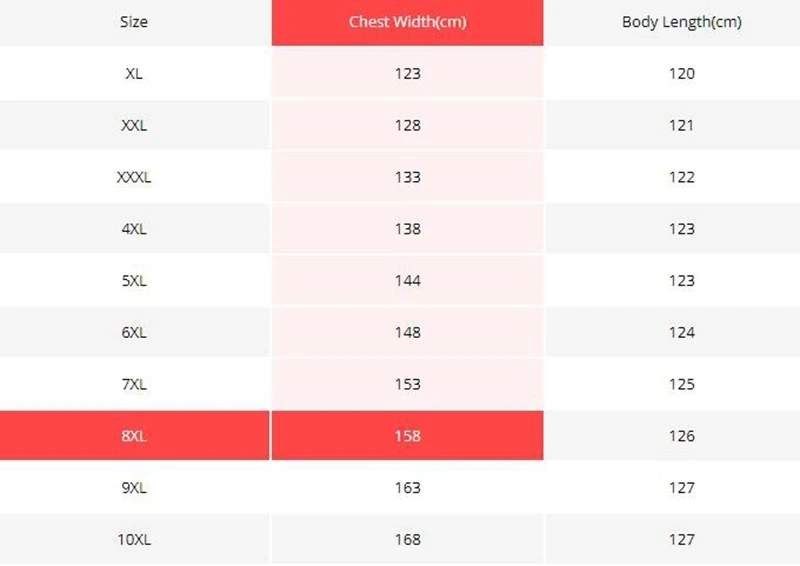 Таблица размеров