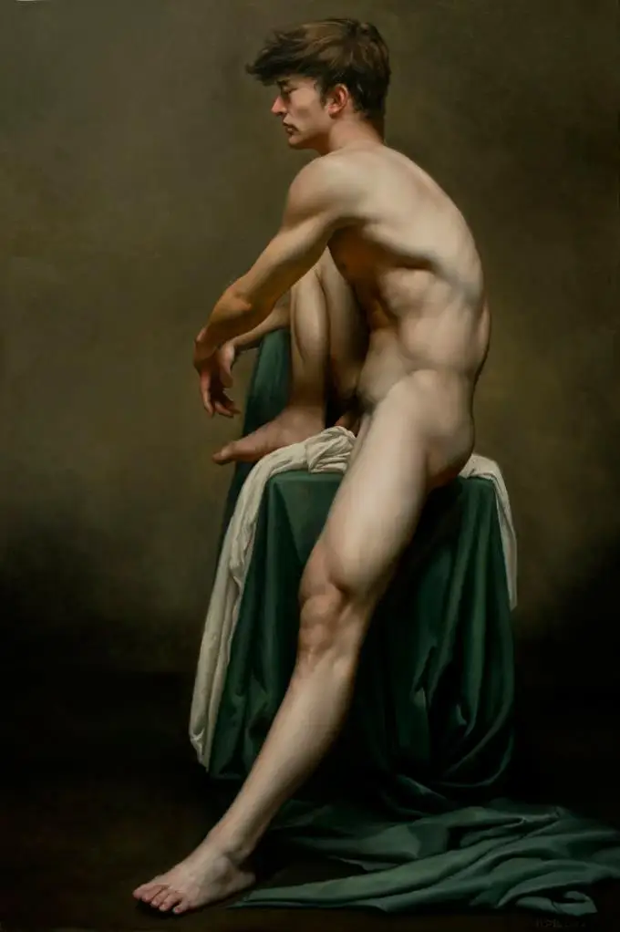 Оригинальная ручная роспись маслом на холсте от старого художника: Гламурная модель, однополый интерес мужчины
