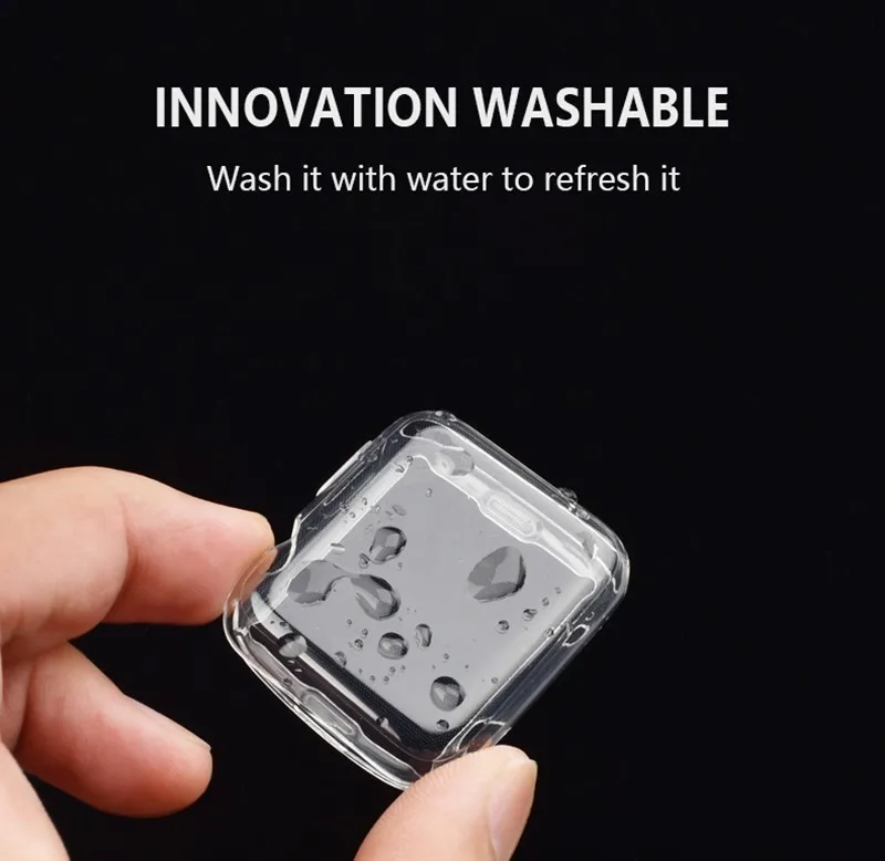 Этот чехол с защитной пленкой предназначен для защиты внешней поверхности ваших часов apple watch. Гладкий прозрачный чехол из ТПУ.