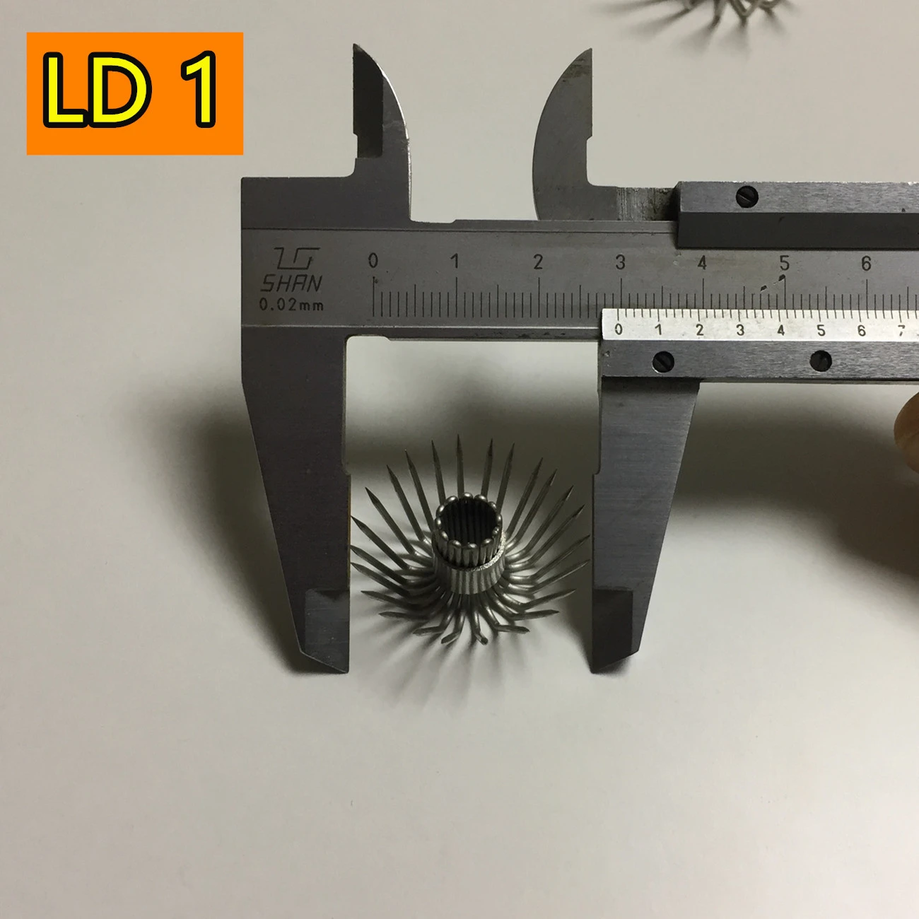 LD1: 24 стальных штифта, внешний диаметр 29 мм, общая высота 15 мм, высота стальных штифтов 12 мм, диаметр стальных штифтов 0,9 мм, внутреннее отверстие 6 мм, вес 4,1 г