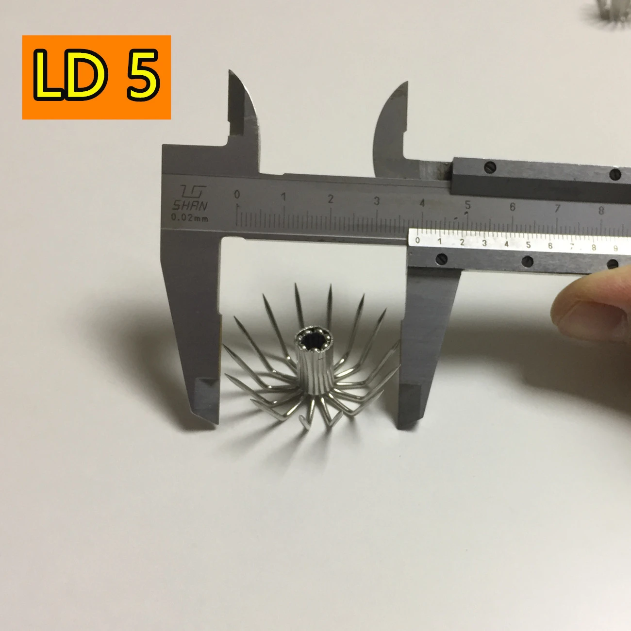 LD5: 14 стальных штифтов, внешний диаметр 38 мм, общая высота 17 мм, высота стальных штифтов 15 мм, диаметр стальных штифтов 1,3 мм, внутреннее отверстие 4,5 мм, вес 6,8 г