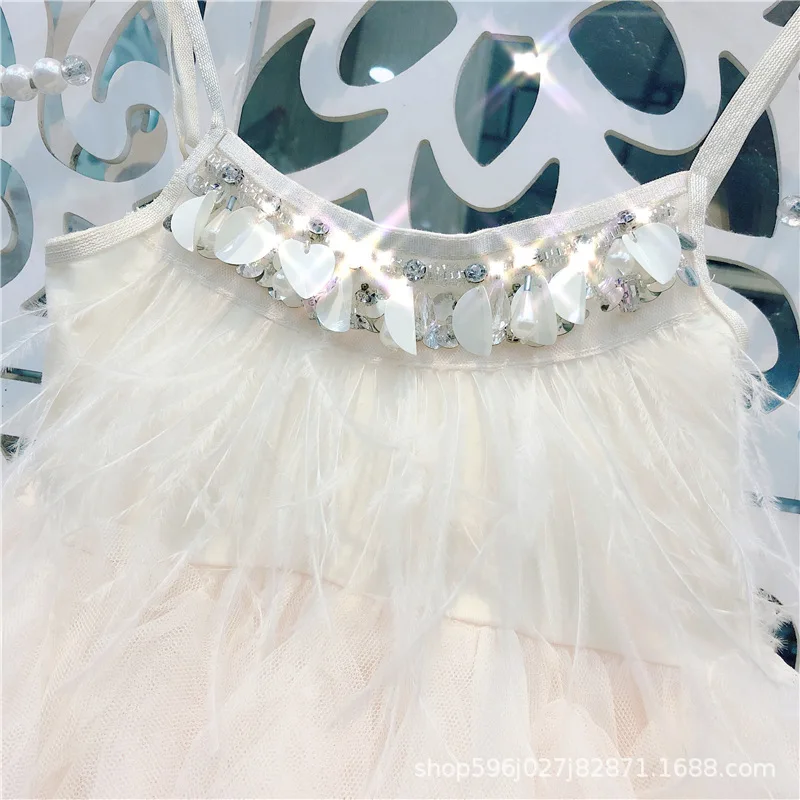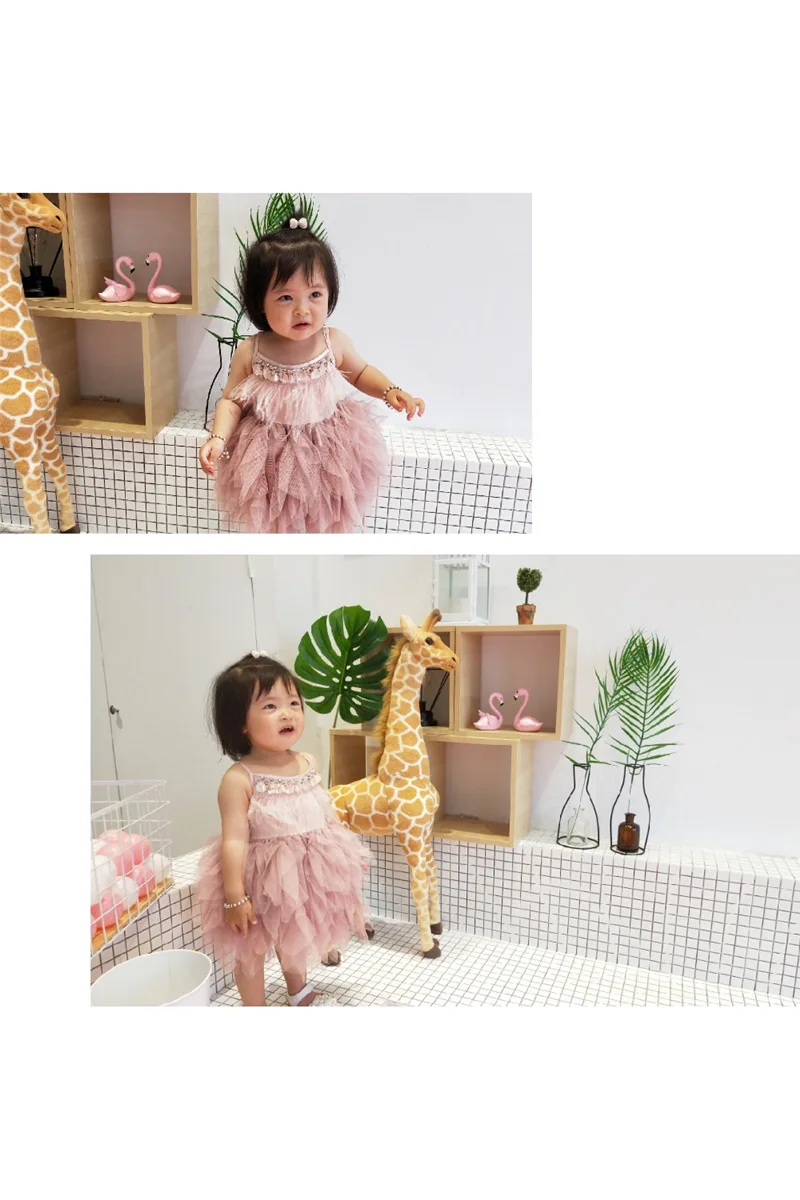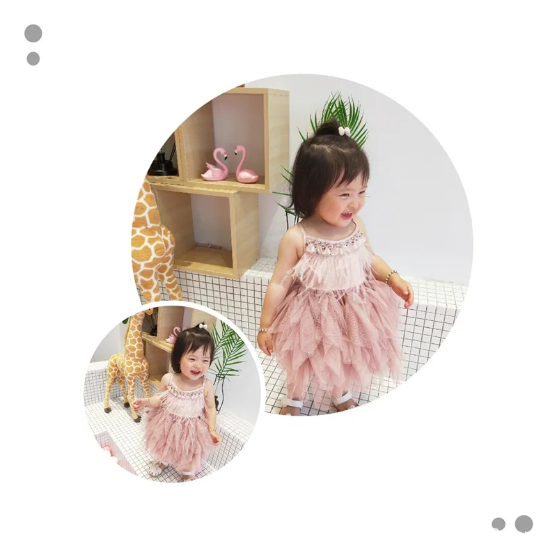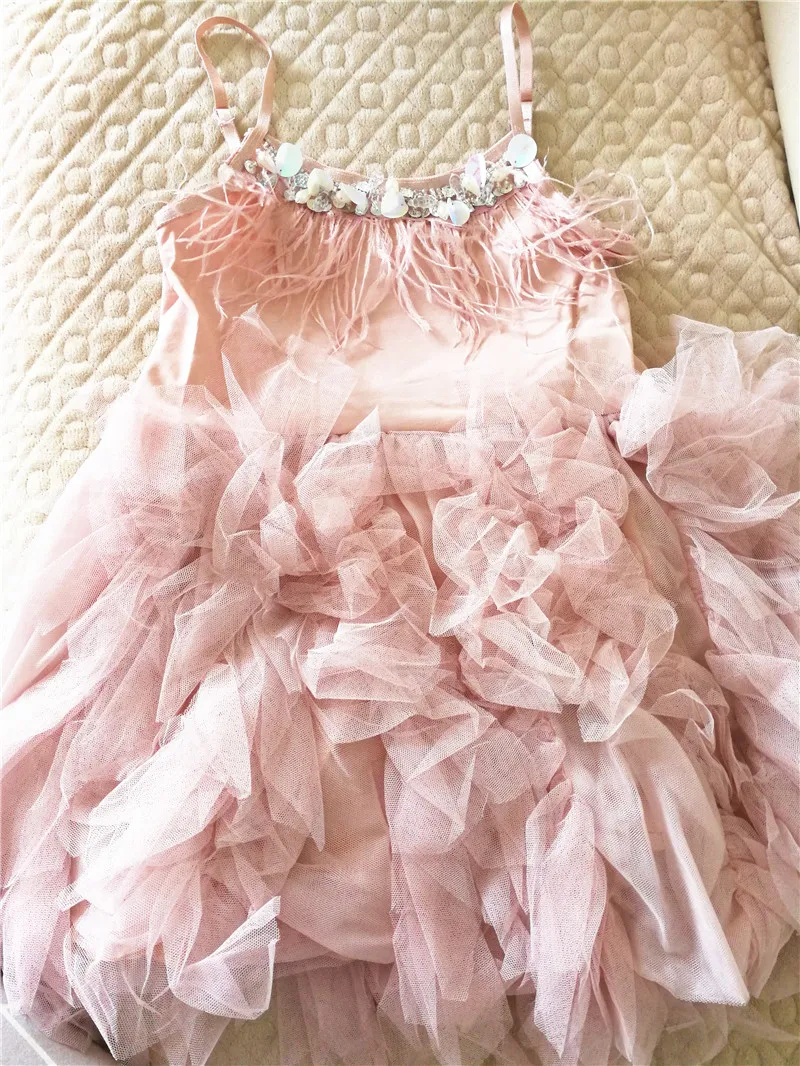 Vestido/платья принцессы для девочек платье-пачка с перьями и бусинами для маленьких девочек на лето 2020 одежда для малышей от 1 до 7 лет