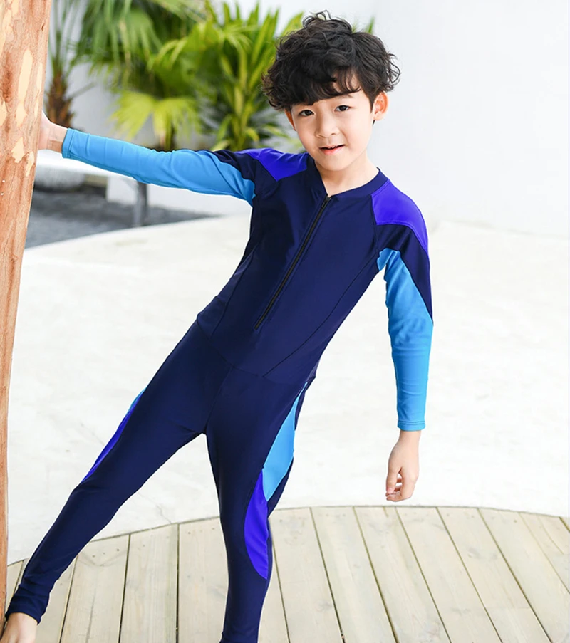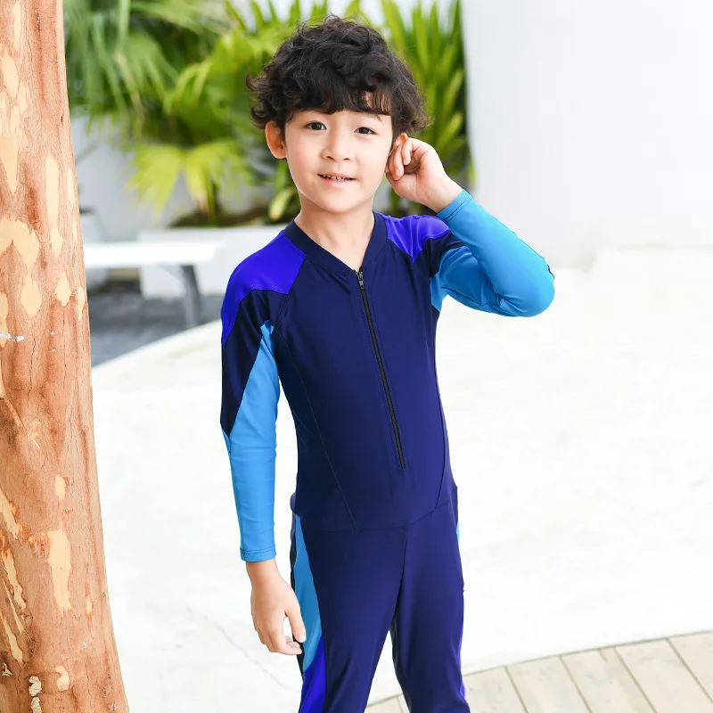 Цельный купальный костюм для мальчиков-подростков; Костюм для плавания; Одежда для плавания в морском стиле; Солнцезащитный костюм с длинными рукавами и штаны; Спортивные костюмы для плавания