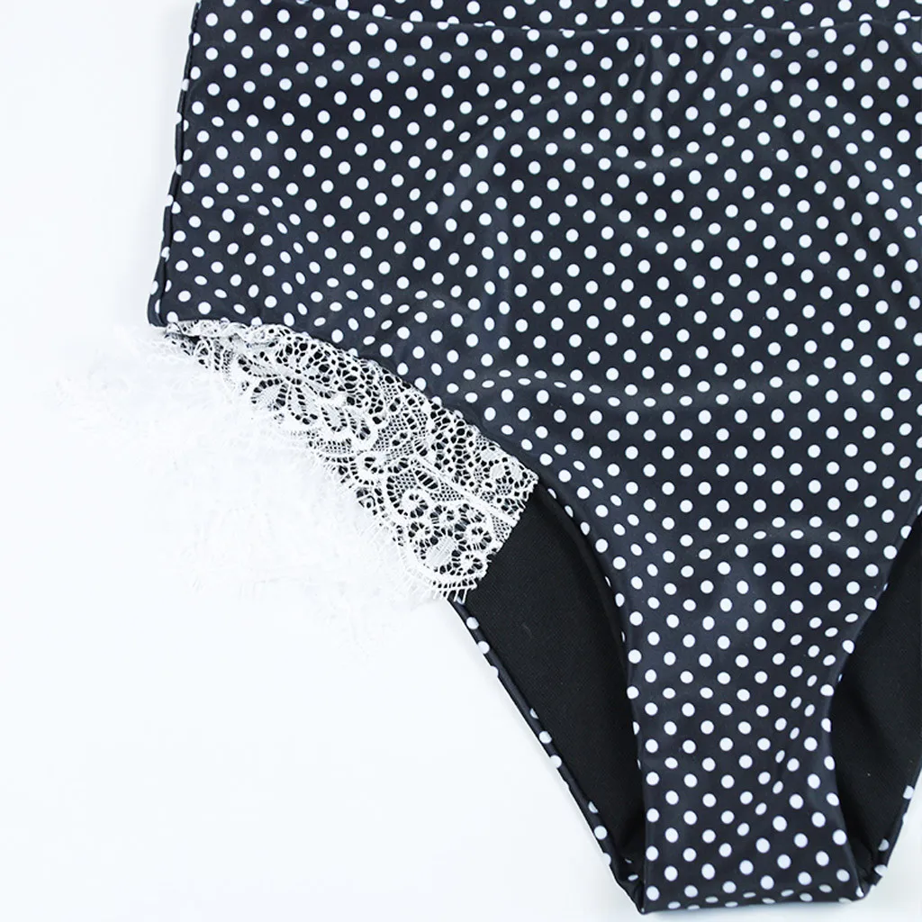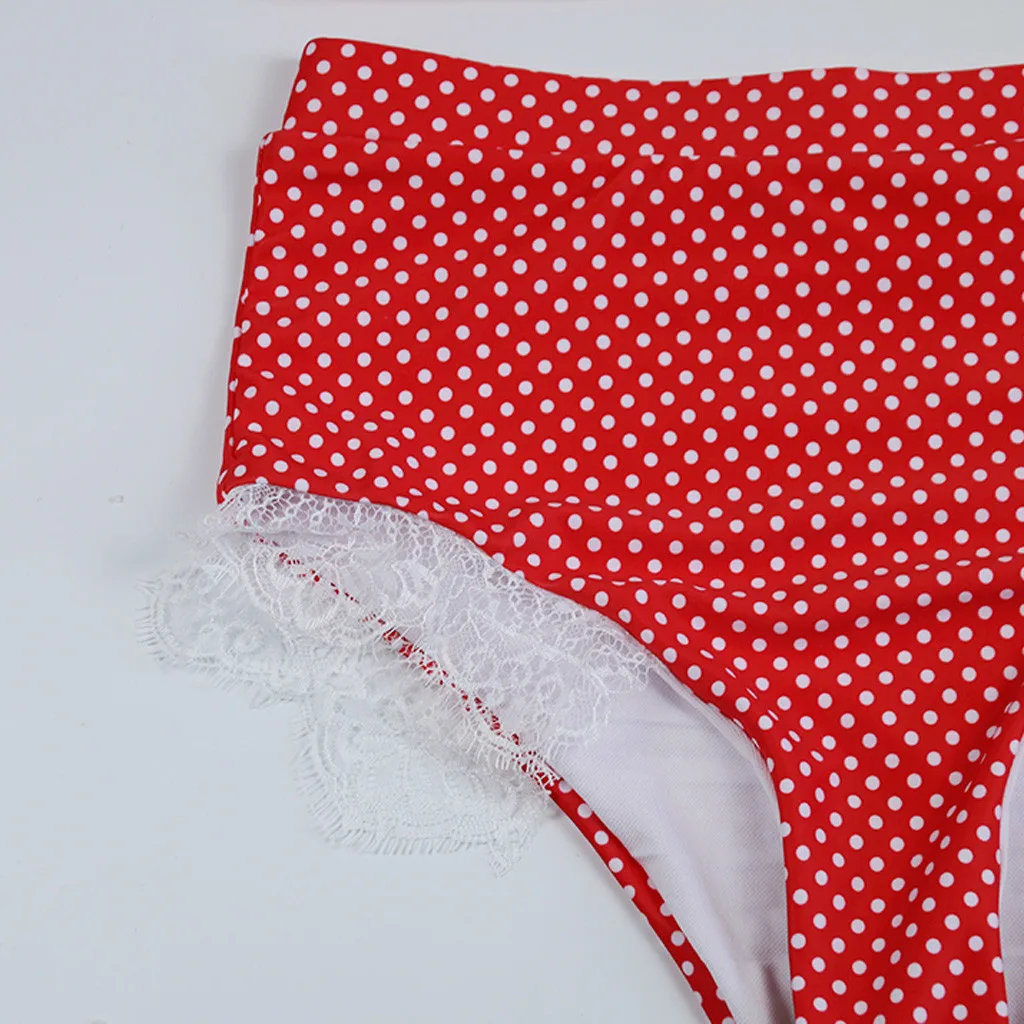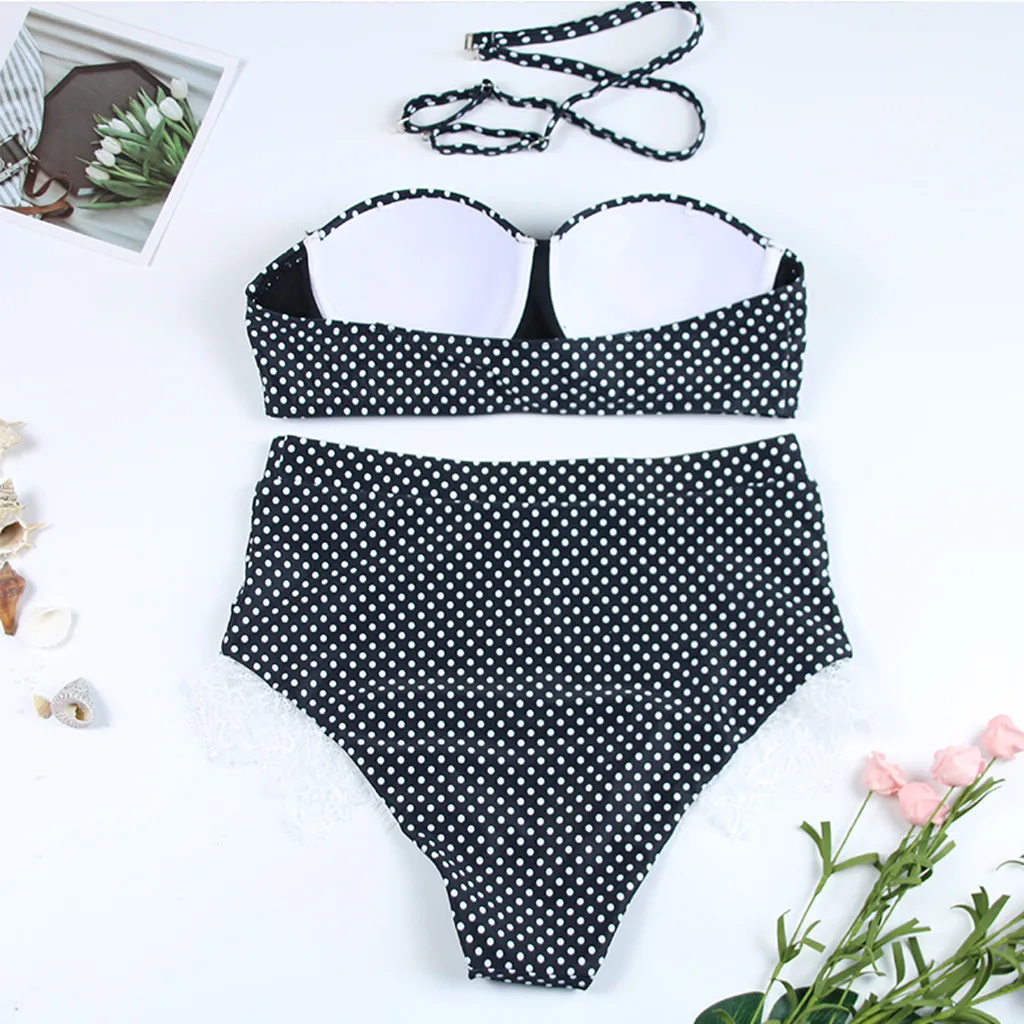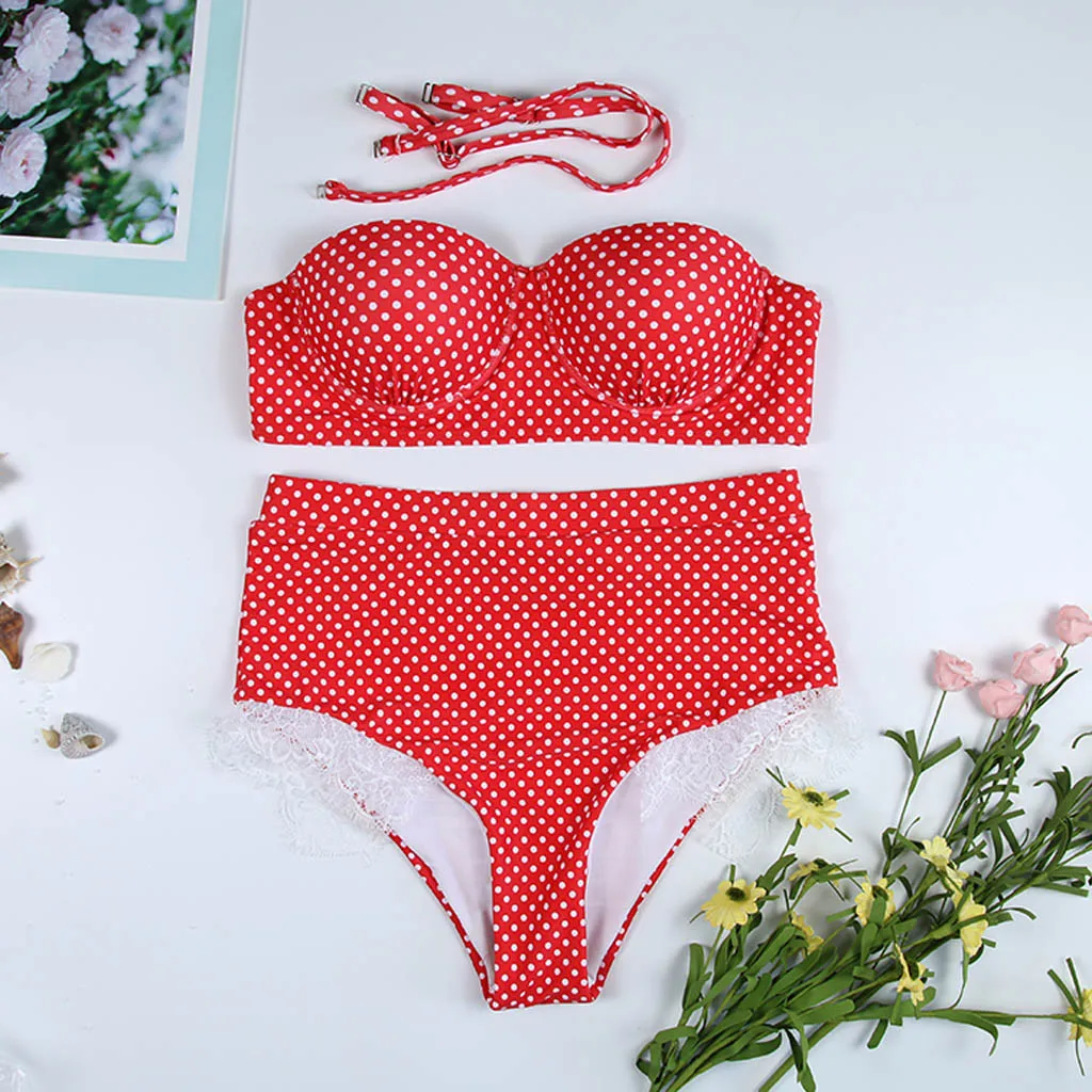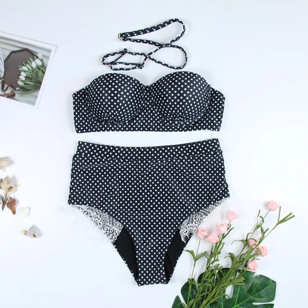 Женский комплект бикини с пуш-апом и высокой талией, купальный костюм с принтом в горошек