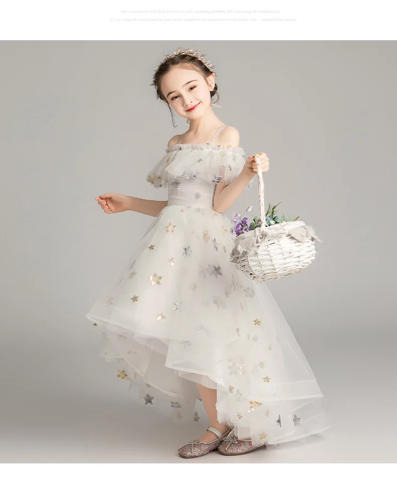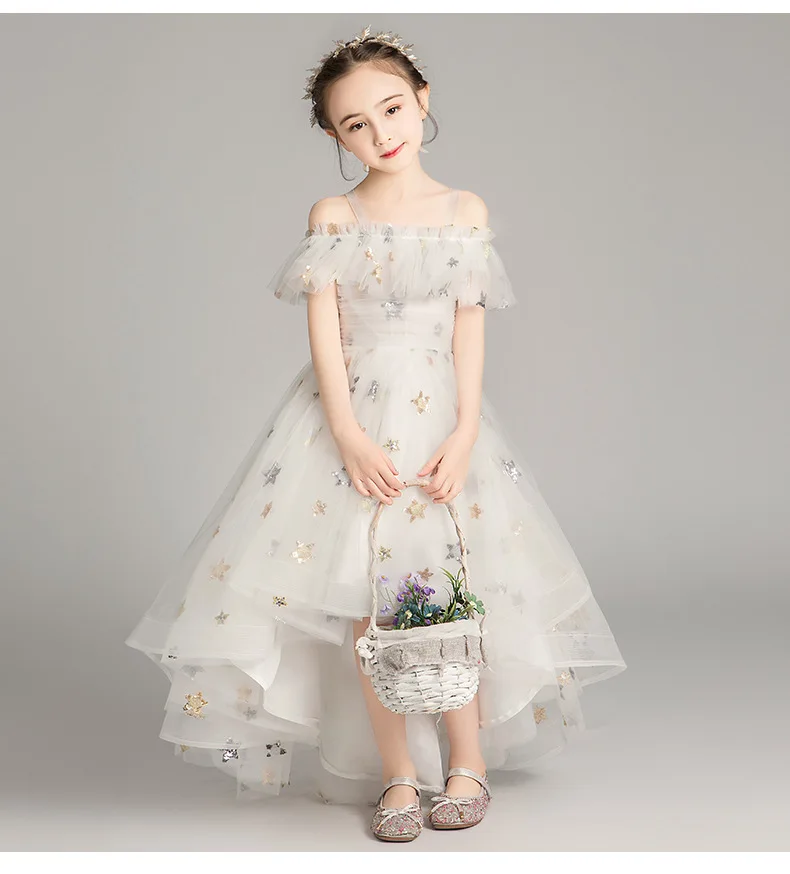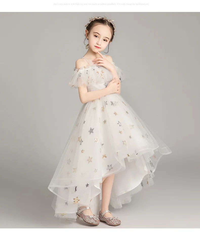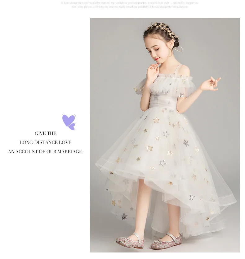 Детское трикотажное платье принцессы вечерние платья с принтом звезды для девочек и по индивидуальному заказу, без бретелек, с хост-фортепианных выступлений платье для свадебного торжества; Vestidos