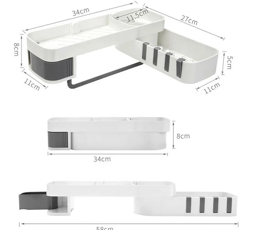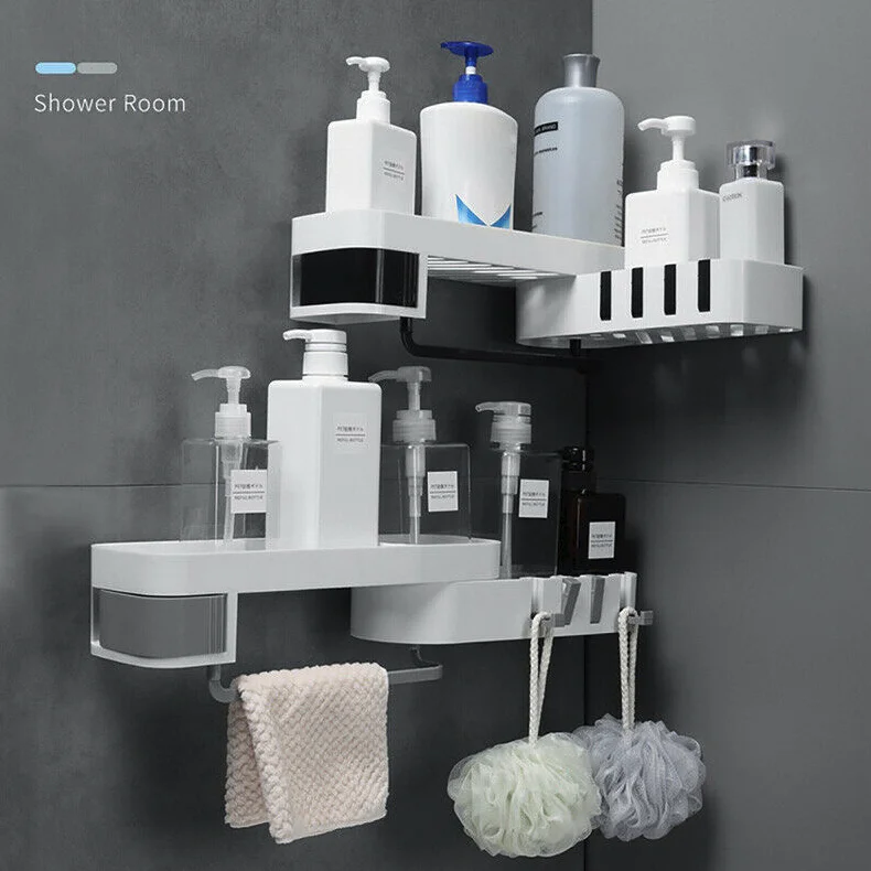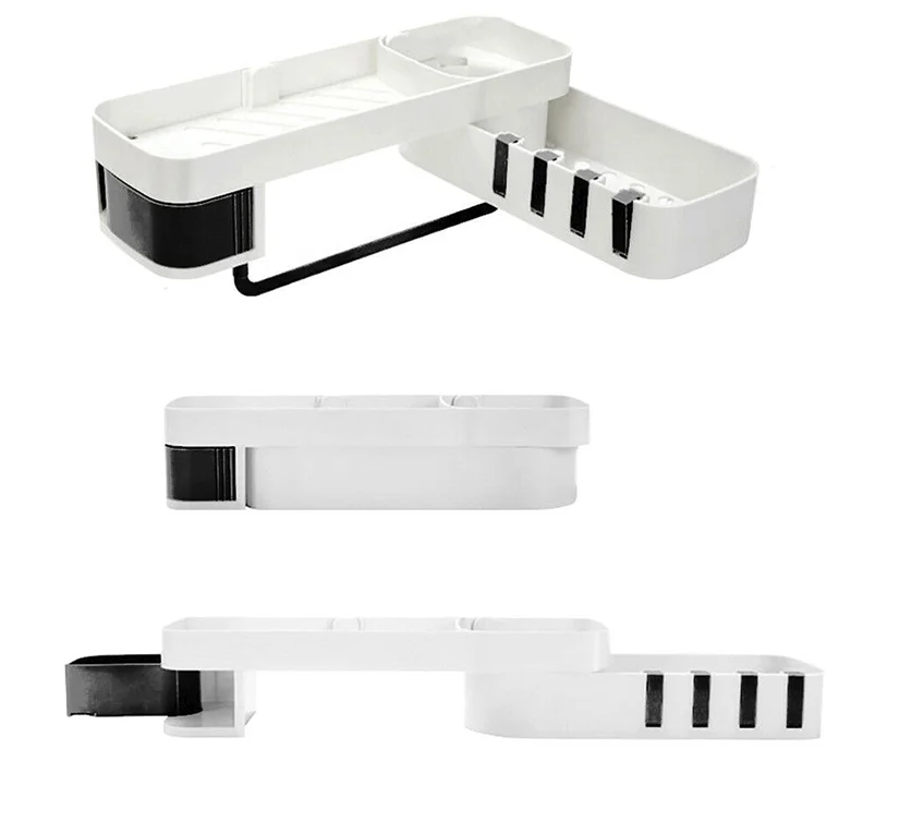 Особенности: Вращающийся стеллаж для выставки товаров Стойку можно поворачивать на 180 градусов, без ограничений по углам, а прямой плоский угол устанавливается по желанию. Это просты в установке различных углов стены. Чистый и аккуратный Стойка выполнена с ажурной резьбой, что помогает сливить базовую тарелку и больше не накапливать воду, забывая о размножении бактерий. Скрытая крюк На краях стойки есть 4 крючка, которые можно использовать для подвешивания полотенец, их можно сложить и скрывать, когда они не используются. Кассета В стойку входит кассета, ювелирные изделия скрыты и не промокают, их удобно вынимать, очень интимный дизайн. Сортировки хранения Есть 3 вида различной емкости, большая емкость Подходит для геля для душа и шампуня, круглая сетка для небольших растений и эфирных масел, средняя емкость для очищающих средств, лосьонов и многого другого. Настенный Стойка-это настенная установка, не требующая сверления отверстий, которую нужно всего лишь прикрепить к стене для простой установки. Применение Полка подходит для хранения в ванной, кухонного хранения, Хранения Туалетных принадлежностей. Стойка подходит для хранения в ванной комнате и проста в использовании с стенкой. Подходит для стирки, чистки, туалетного столика. Уксус для приготовления пищи, подходит для хранения на кухне, масла и соуса. Параметры: Тип: полка для душа Количество: 1 шт. Материал: АБС-пластик Цвет: белый, серый, белый и черный Размер: 34,0*11,0*8,0 см/13,4*4,3*3,1 "(Д * Ш * В) Вес нетто: 486,0 г/17,1 унций Посылка: 1 * полка для душа