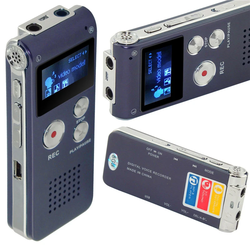 Название товара: диктофон Цвет: серебристо-серый Объем памяти: 8 Гб Размер: 85*36*14 мм Комплект включает: диктофон, аудио кабель записи, наушники, USB кабель, руководство пользователя Формат записи голоса: WAV, MP3 Время непрерывной записи: 20 ч Время воспроизведения голосовой записи: 7h Дисплей: ЖК-дисплей Videoing: нет Встроенный микрофон: Да Тип батареи: перезаряжаемая литиевая батарея Интерфейс: USB 2,0 Режим зарядки: зарядка через USB Материал корпуса: алюминиевый сплав