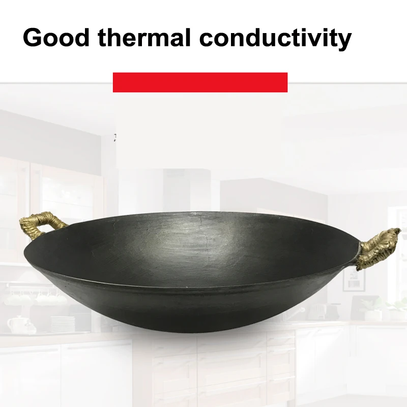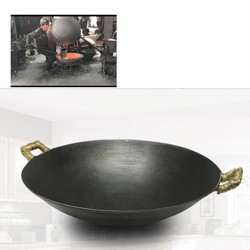 Железный вок чугунная кастрюля с непокрытием для общего использования для газовой и индукционной плиты 30 см 32 см 34 см китайский ВОК кухонная утварь кухонные инструменты