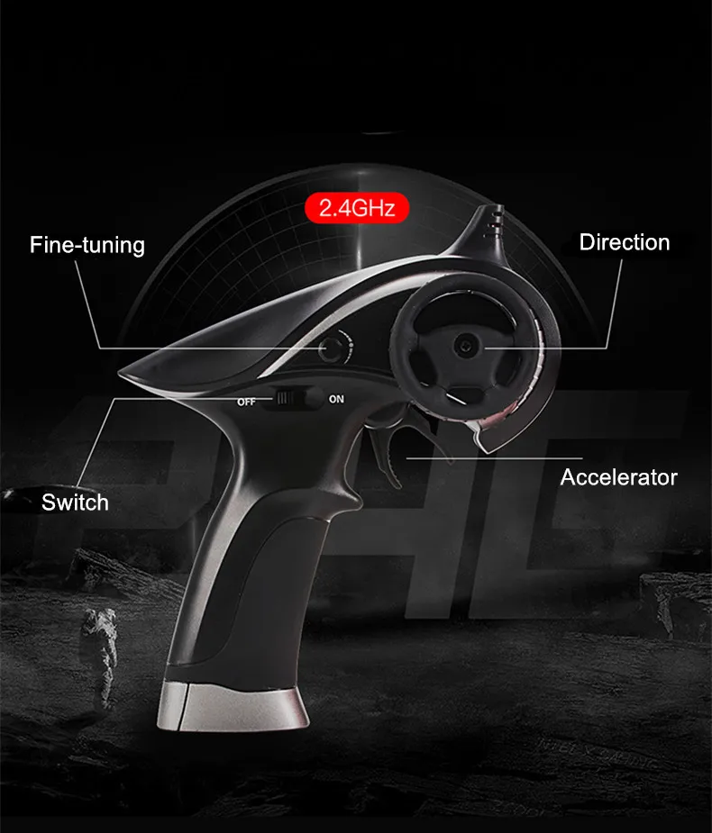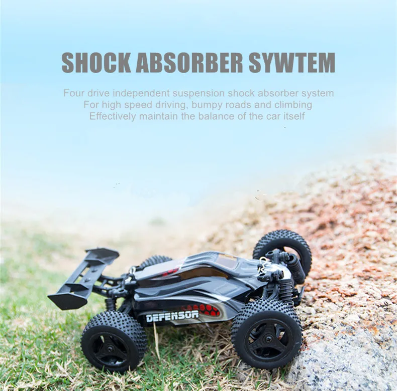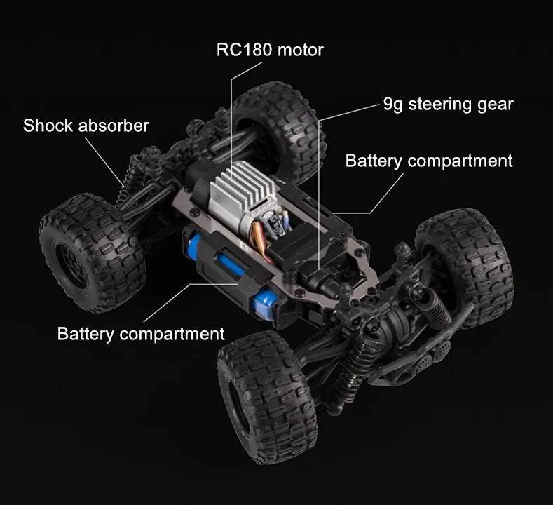 Название продукта: внедорожный багги Соотношение продукта: 1:24 Цвет изделия: черный Размер продукта: 19x13x7,5 см (1 дюйм ≈ 2,4 см) Расстояние между осями: 11 см Диаметр шины: 4,5 см Ширина шин: 2 см Высота шасси: 2,2 см Частота: 2,4 ГГц Двигатель: RC 180 Сильный магнитный Рулевая передача: 9g 5 проводов ESC: водонепроницаемый Скорость: 35 км/ч Удаленное Расстояние: > 80 метров Срок службы: ≥ 20 минут Время зарядки: 120 минут Батарея Емкость: 3,7 V 800mAH Пульт дистанционного управления батареи: 1,5 V "AA" x2 (к товару не прилагаются) Материал изделия: сплав, пластик, резина, электронные компоненты Характеристики продукта: высокая и низкая скорость переключения, подъем, вперед, назад, поворот налево, поворот направо Конфигурация продукта: 4WD \ 2,4 ГГц \ 9g 5-проводной рулевой механизм \ Водонепроницаемый ESC \ Металл передний дифференциал \ независимая подвеска \ независимые амортизатор Посылка включает в себя: 1 x RC автомобиль 1 пульт дистанционного управления 2 батареи Зарядное устройство-1 шт. 1 х USB кабель 1 х Руководство Наклейка-1 шт.