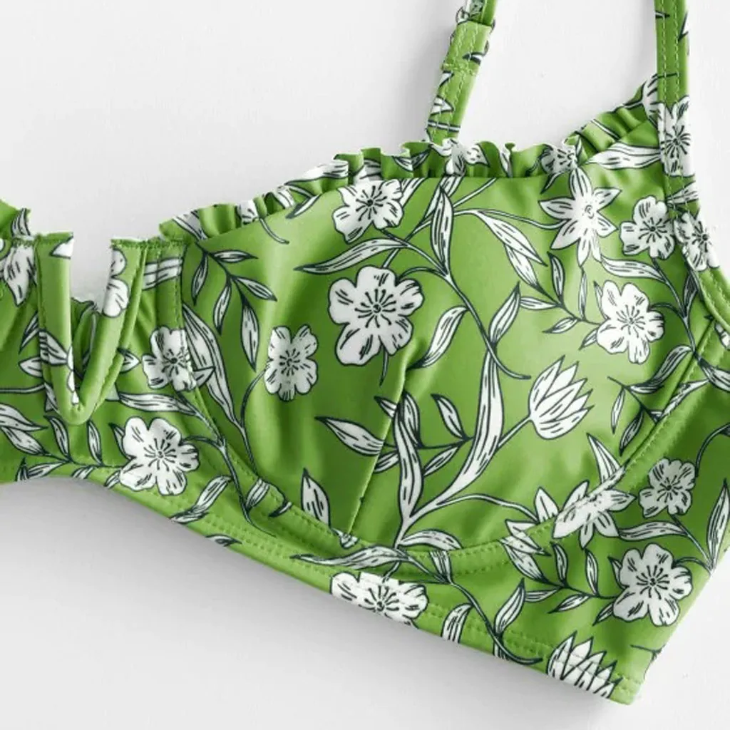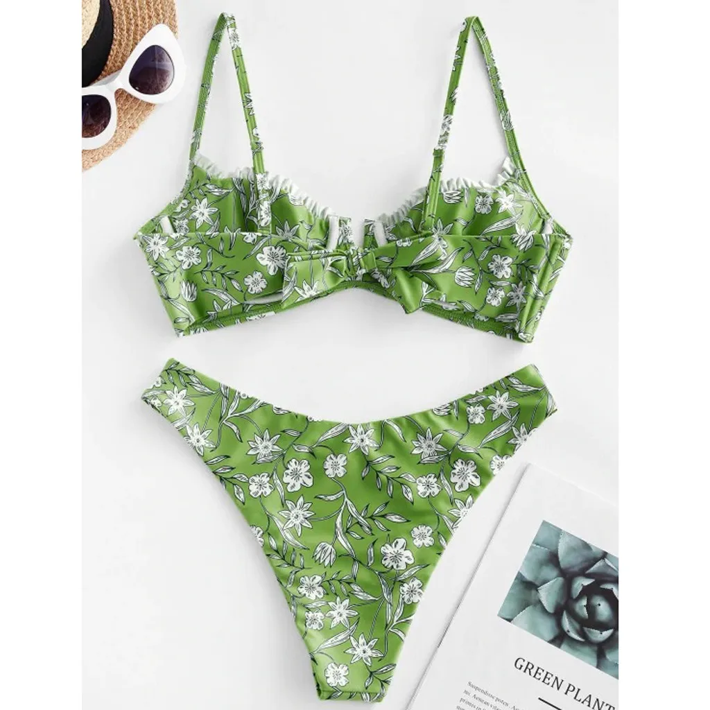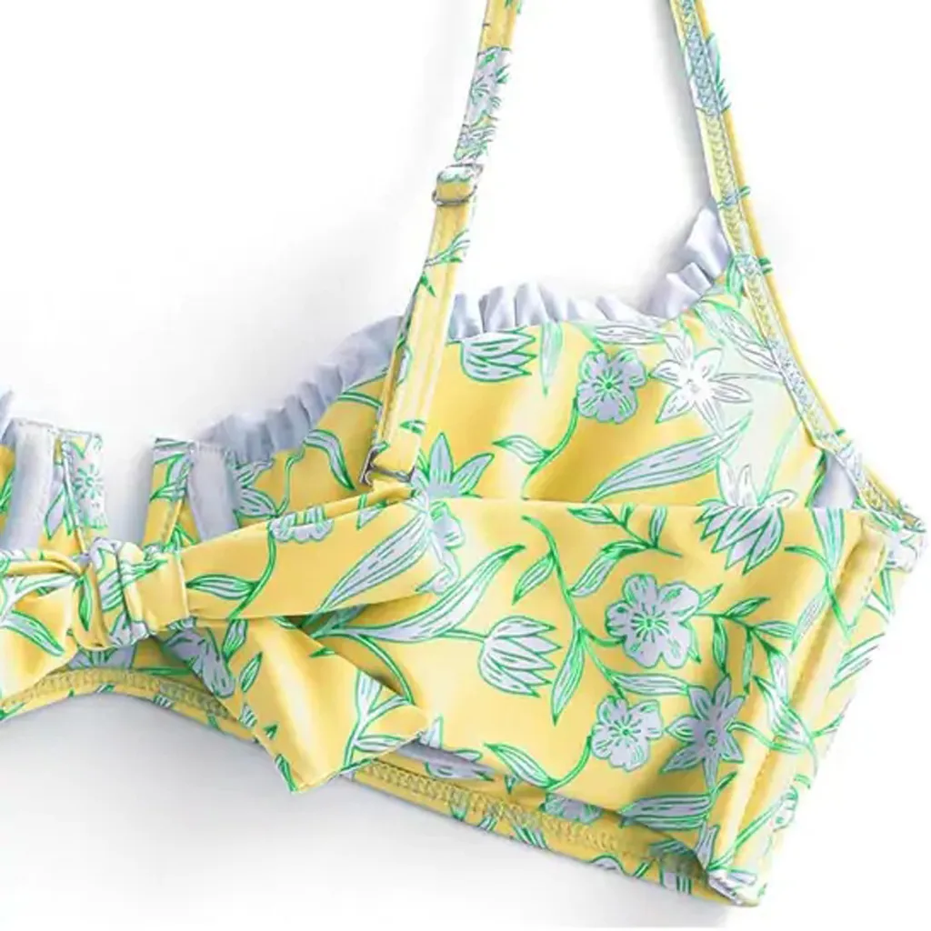 Женский купальник-бикини из двух частей с цветочным принтом и v-образным вырезом, пляжная одежда Пожалуйста, проверьте таблицу размеров перед заказом. Если вы не уверены в размере, пожалуйста, отправьте нам сообщение. Особенности: