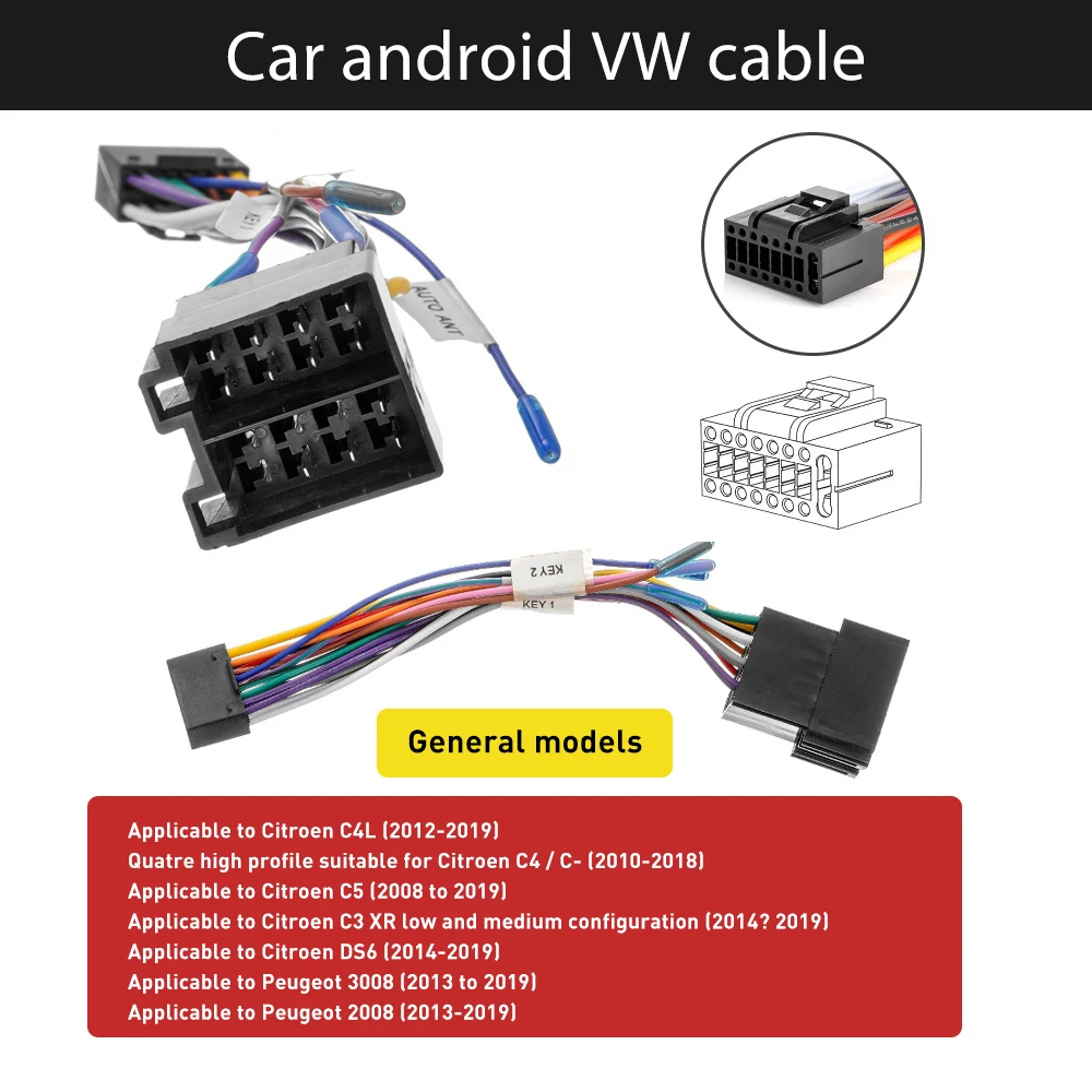 Разъем питания для VW 16P, разъем для хоста Android, соединительный кабель передачи данных.