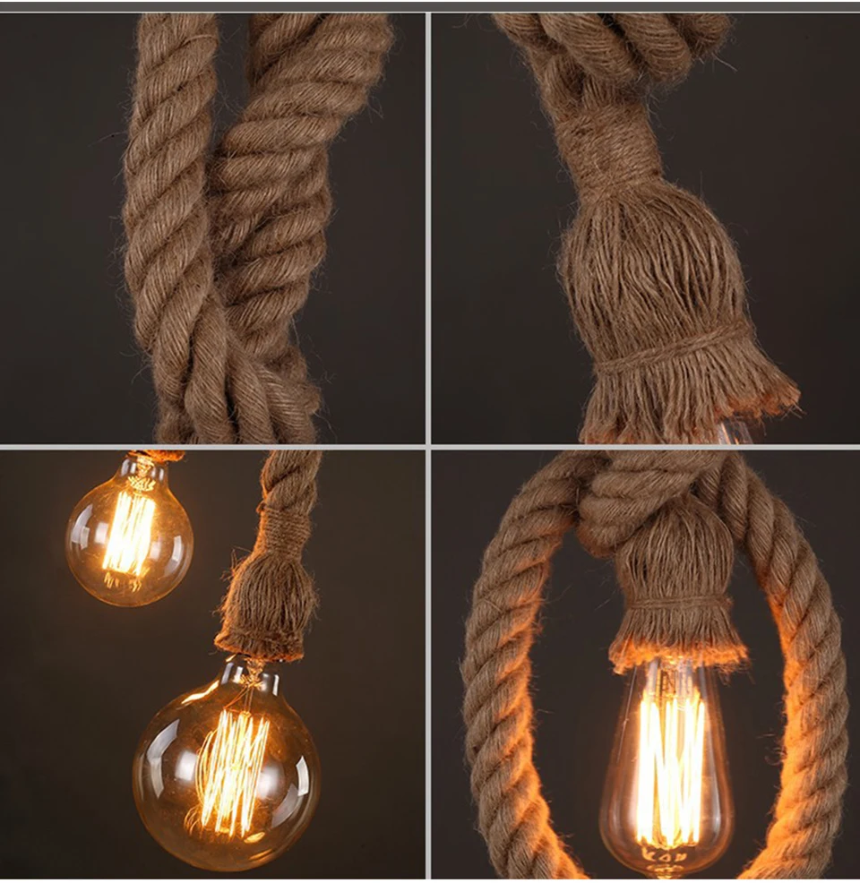 1 X подвесной светильник из пеньковой веревки