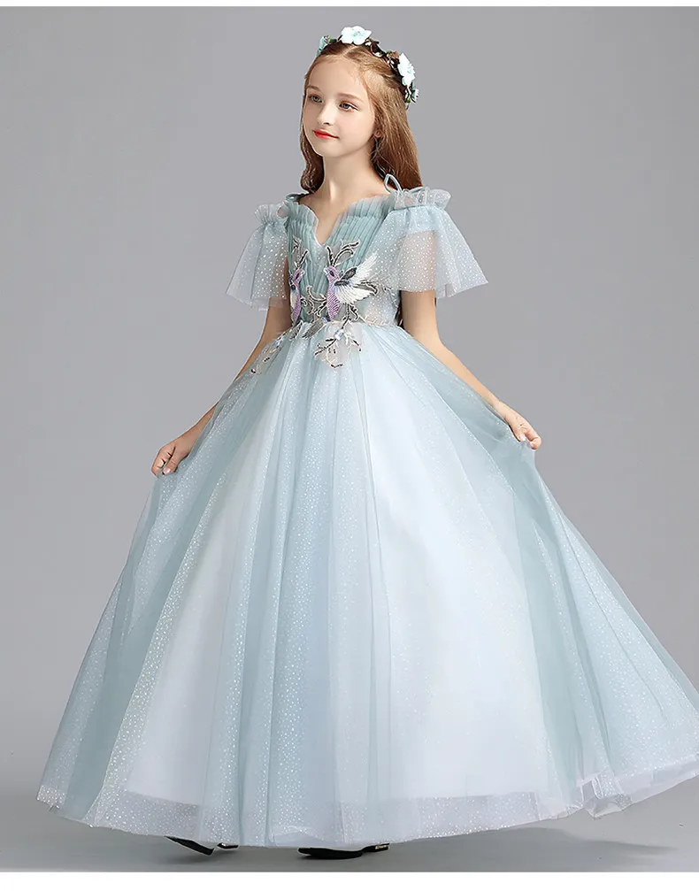 Vestidos; роскошное платье принцессы с цветочной вышивкой для девочек; детское праздничное платье с кружевной аппликацией для девочек; праздничное платье; 2020