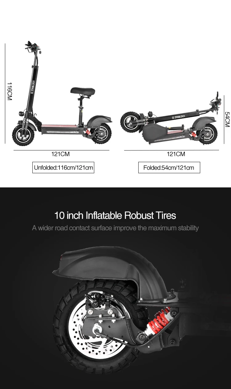 Портативный Электрический скутер для взрослых, 48 В, 1200 Вт, 35-45 км/ч, со светодиодсветильник кой и сиденьем, 10 дюймов