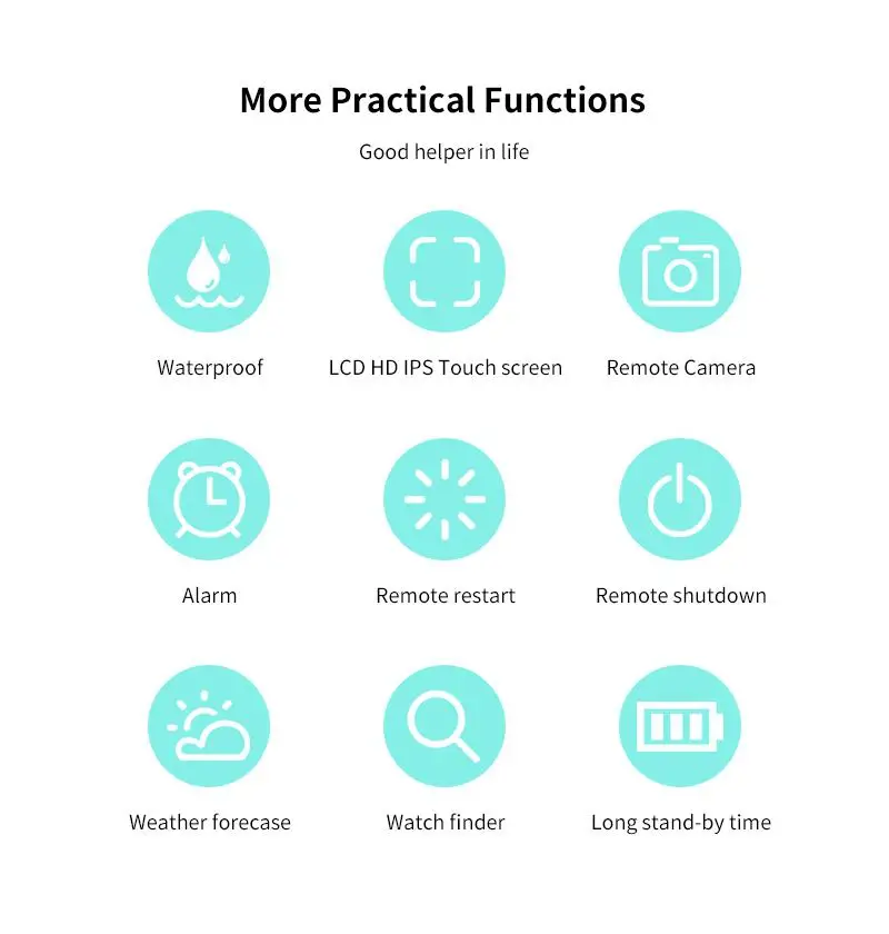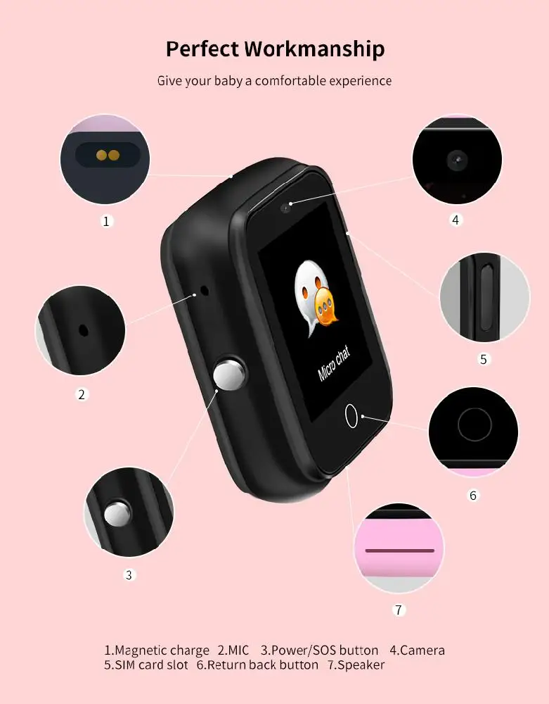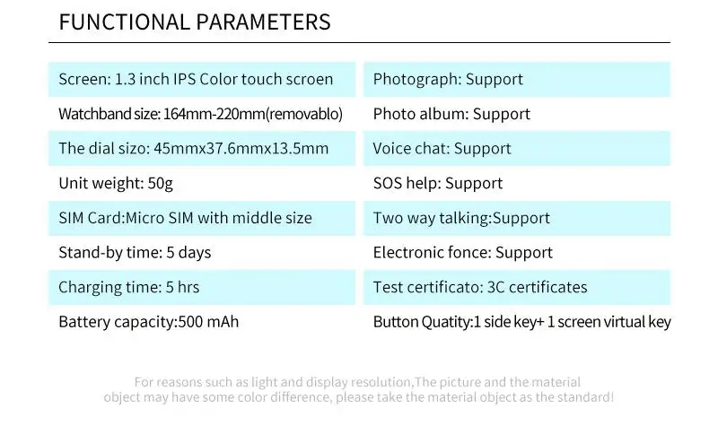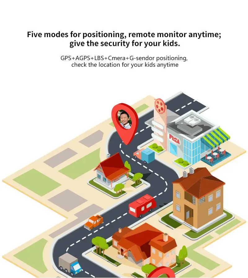 Функции: GPS, GPS, LBS, камера, Gsensor многократное позиционирование, экстренный вызов SOS, двусторонний звонок, удаленный мониторинг, электронный забор, история, онлайн-отслеживание, микро-чаты, часы-Будильник, найти часы