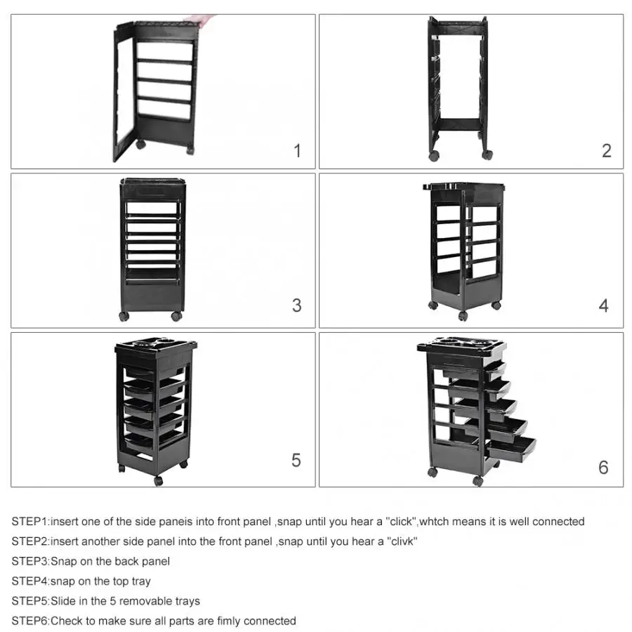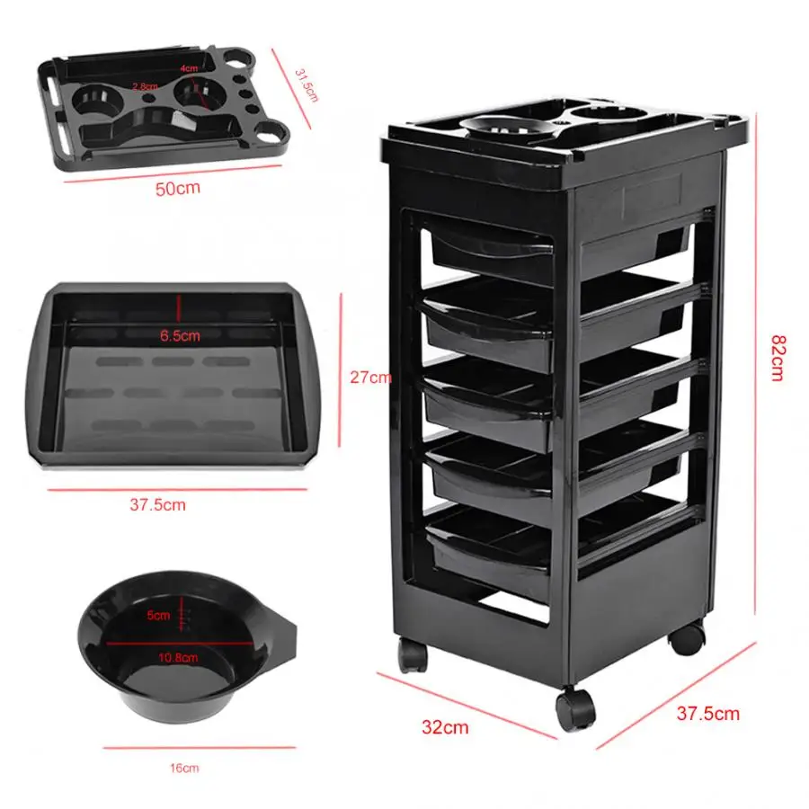 Этот салонный инструмент для хранения волос имеет 5 ящиков, емкость, легко хранить много инструментов. Рабочая зона наверху с несколькими отсеками и вентиляционными опорами. Абсолютно необходимый инструмент для парикмахерской или салона красоты.
