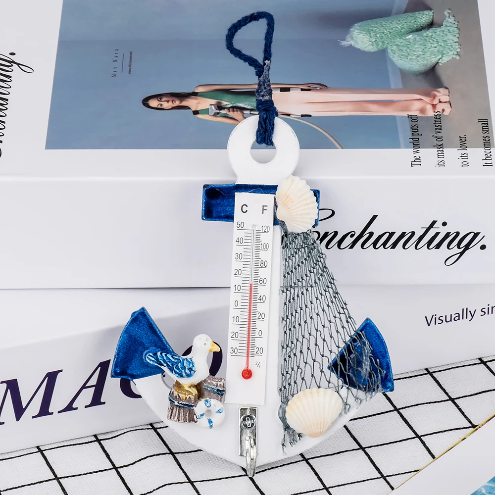 Подвесной крюк, деревянный термометр, якорь, пляжные ракушки, морская стена, украшение для дома, двери (случайный цвет)