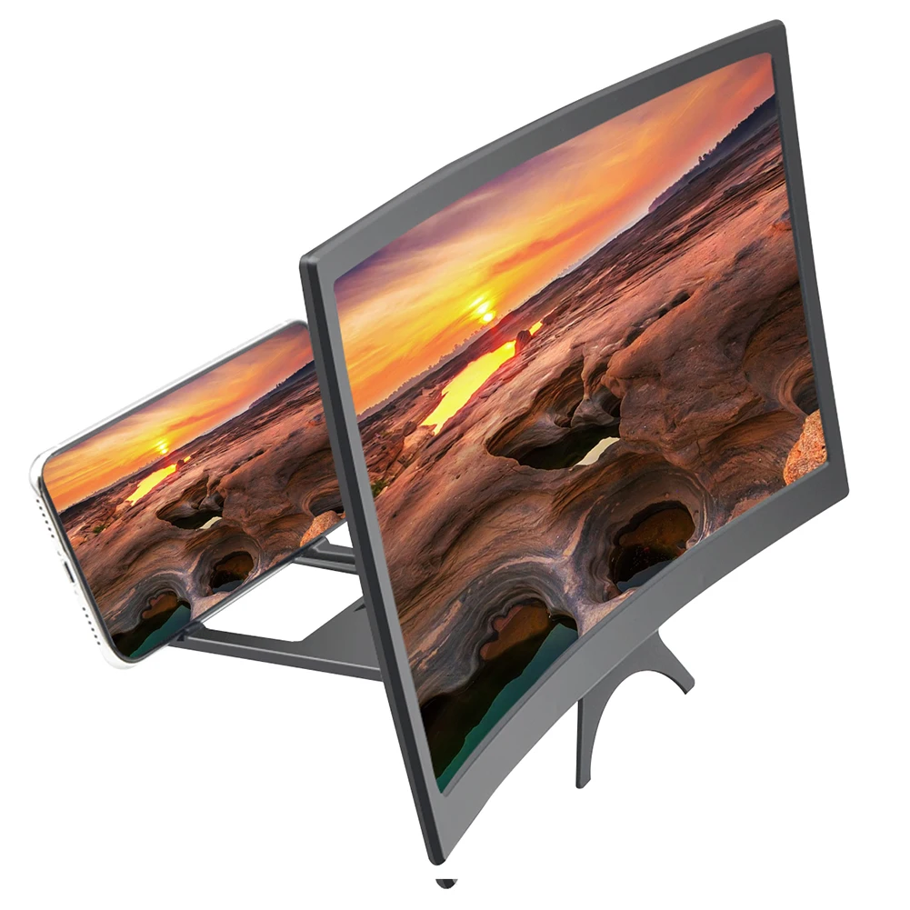 Этот экран с изогнутыми краями мобильный телефон усилитель использует новую Изогнутая конструкция с изогнутой рамкой + 12-дюймовый высокой четкости акриловые линзы, наслаждаясь большой видеоизображения, вы можете также имеют более широкий угол обзора, больше не нужно, чтобы оставаться в часики осанки, даже если вы тряски левые и правые, Вы можете увидеть расширенного высокой четкости изображения.
