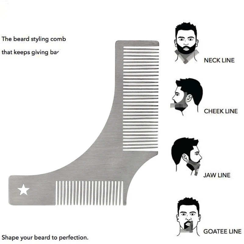 Мужской инструмент для формирования бороды, утягивающий формирователь из нержавеющей стали, руководство по шаблону для бритья или трафарета с полноразмерной расческой для наращивания