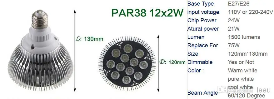 Бесплатная доставка диммируемая CREE Светодиодная лампа par38 свет 9 Вт 10 Вт 14 Вт 18 Вт 24 Вт 30 Вт 36 Вт E27 par 30 38 110-240 в светодиодное освещение прожектор par30 светильник