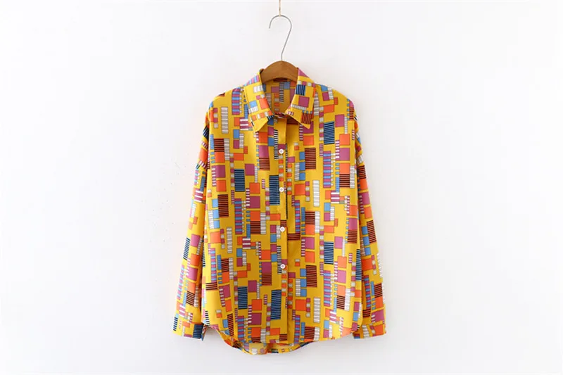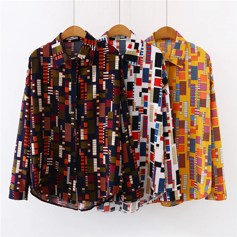 Новинка лета 2020, женская шифоновая блузка с Мозаичным принтом, осенняя белая рубашка с длинным рукавом, винтажные Топы больших размеров T03202F