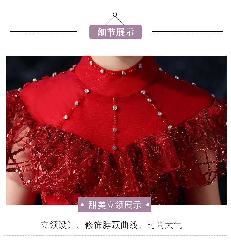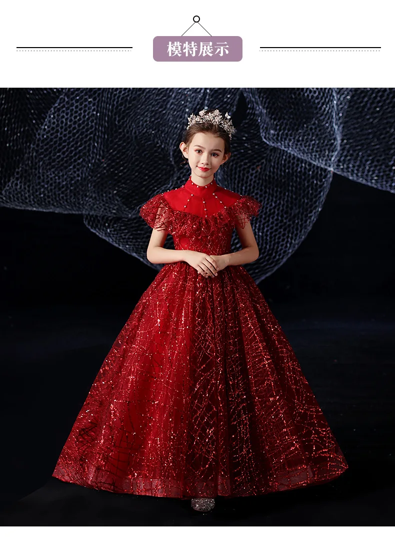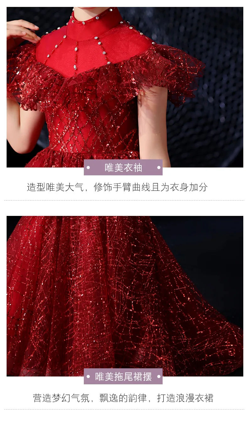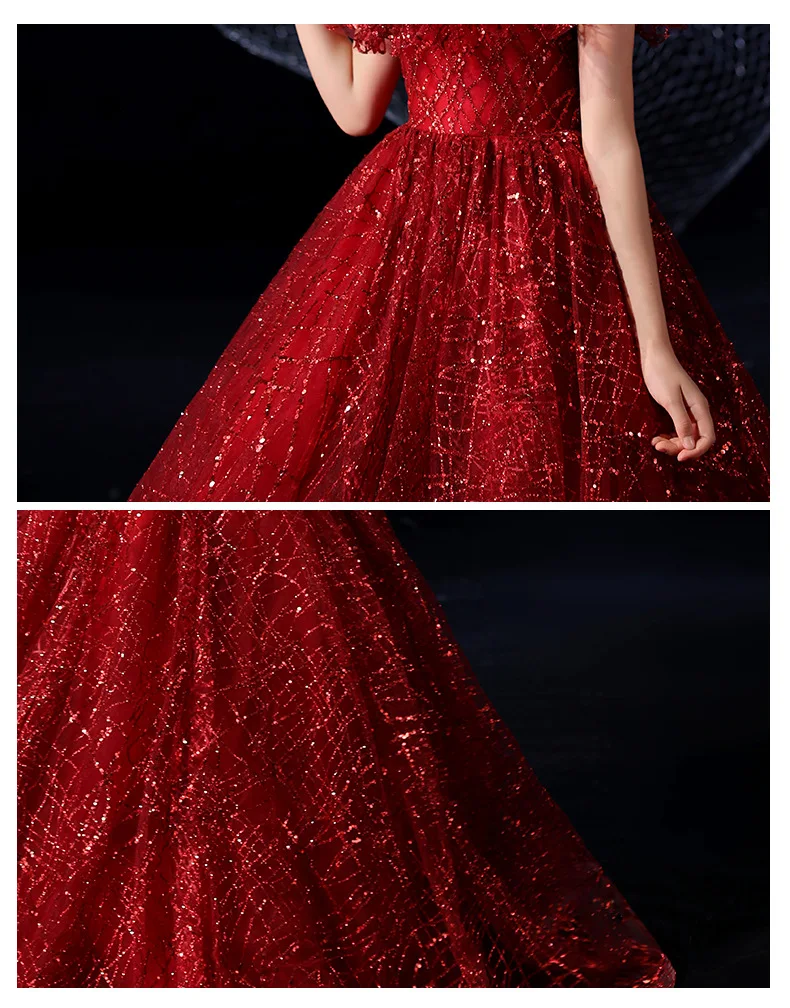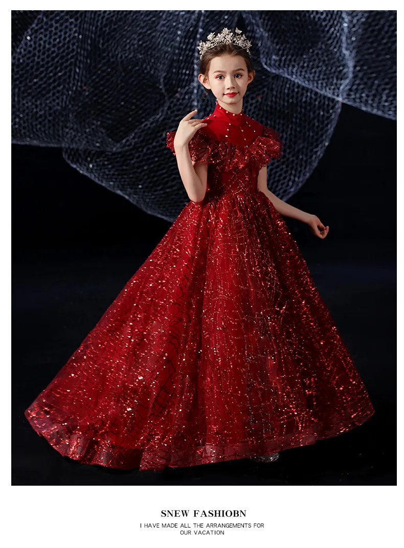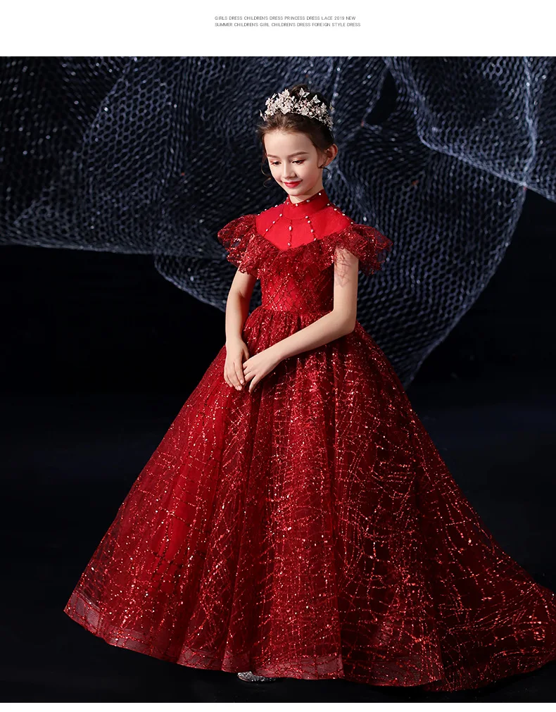 Детское элегантное красивое платье винно-красного цвета, вечернее платье принцессы на день рождения, роскошное платье с блестками для девочек