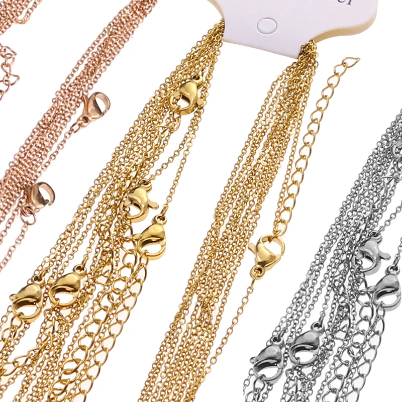 1 мм 10 шт нержавеющая сталь Розовое золото Cut Rolo Link кубинские цепочки цвет 45 + 5 см длинные ожерелья чокер для женщин/мужчин кулон оптом распродажа