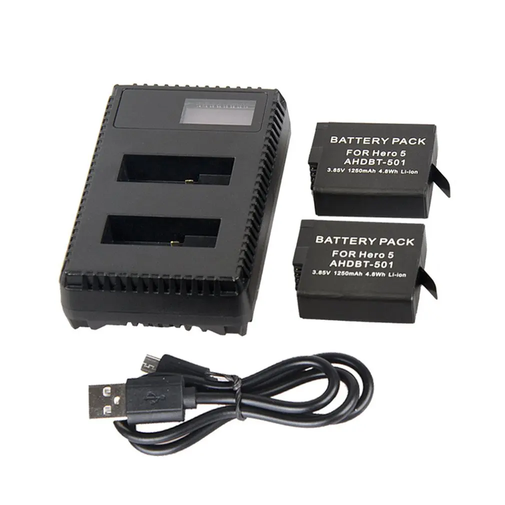 Подходит для Gopro набор Ahdbt-501 двух аккумуляторов ЖК-дисплей двойной зарядный Usb кабель портативная защита от перегрева