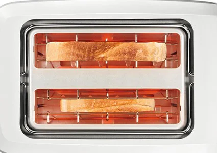 Равномерное обжаривание с автоматическим центрированием тостов. Высокий подъем решетки для извлечения небольших ломтиков хлеба. Хорошо впишется в любой интерьер кухни.