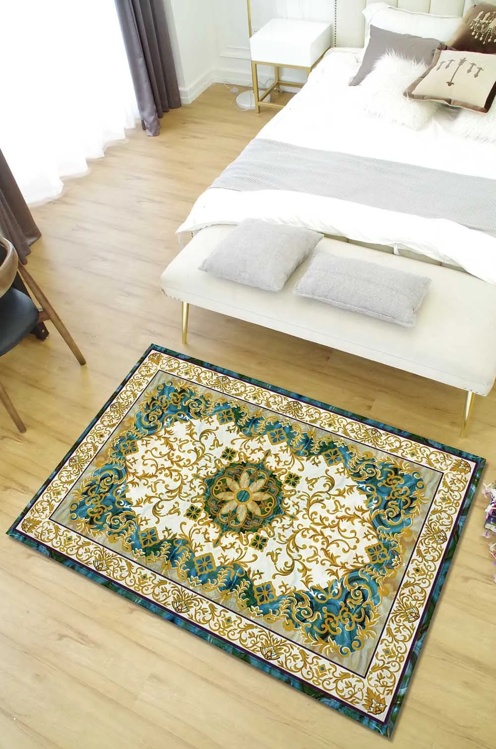 Арабский Ковер, коралловый бархат, игровой стул, напольный коврик с принтом мандалы, прямоугольный ковер для гостиной, спальни, роскошная зона, ковер синего цвета