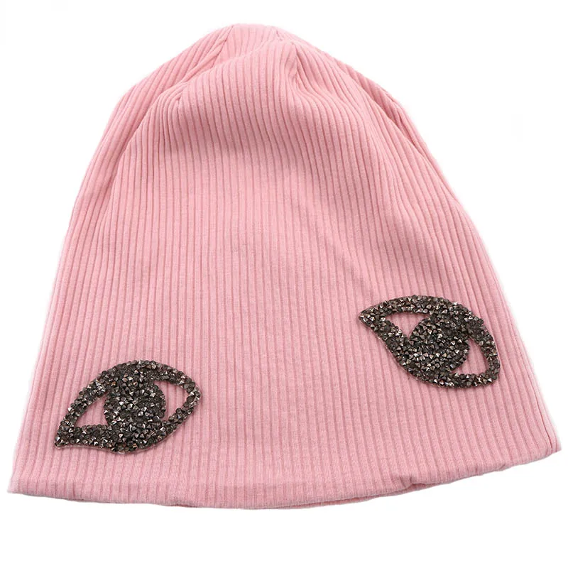 Новый дизайн, женские ребристые хлопковые шапки со стразами, повседневные, весна, осень, зима, женские шапки-бини, шапки и шапки для девочек