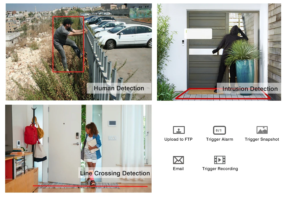 Это поможет вам увидеть важную информацию и уменьшить ненужные оповещения. В отличие от нормального обнаружения движения, камера записывает события «человеческое движение» и сохраняет именно моменты для более позднего воспроизведения, значительно уменьшая Обнаружение ошибки при движении. Вы можете установить Обнаружение человека, определение линейности и обнаружение вторжений по вашему желанию.