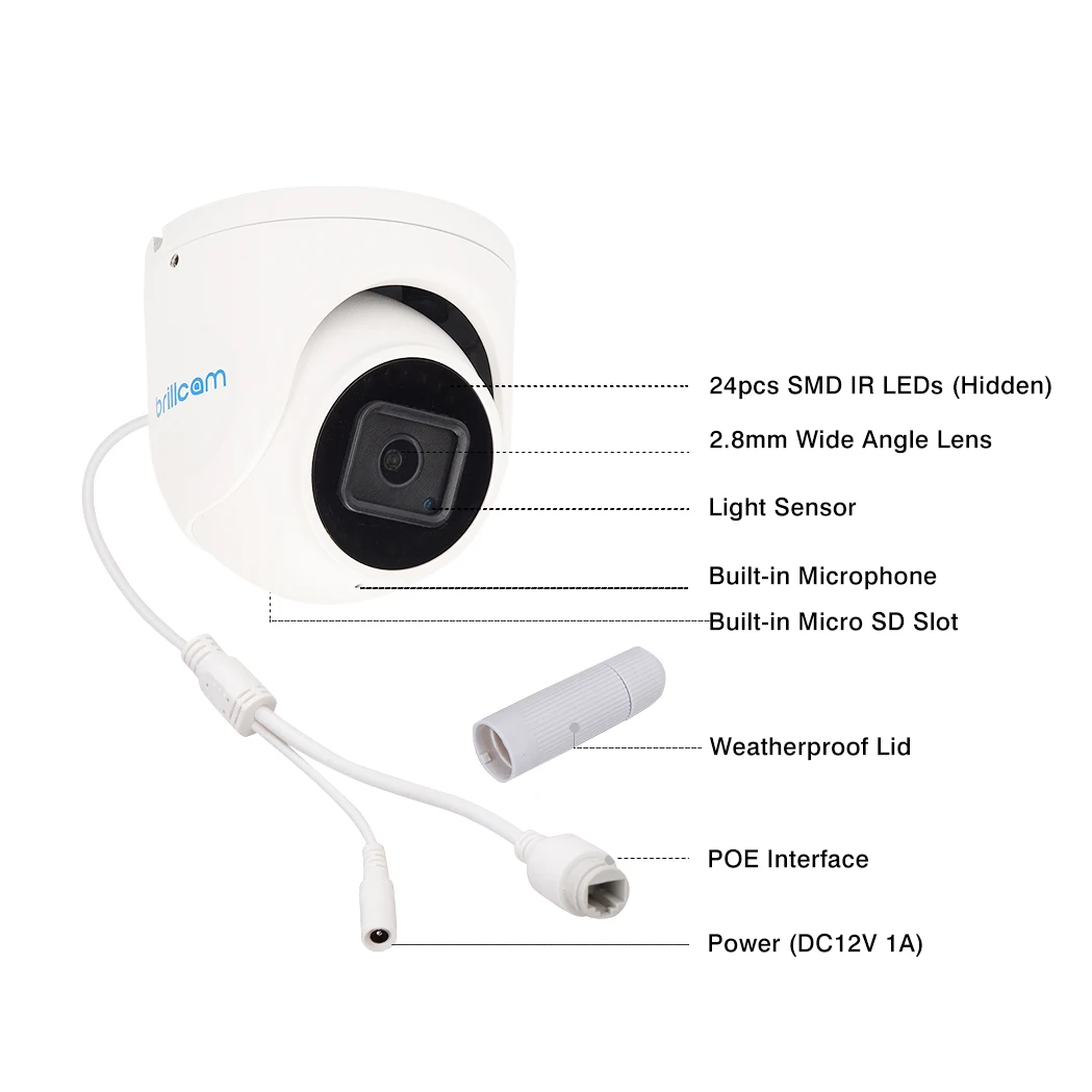 Brillcam POE IP Камера 5MP HD AI микрофон SD слот на открытом воздухе Водонепроницаемый Ночное видение камера с аудио SD Разъем карты (без 12V 1A Мощность адаптер стандарта Австралии)
