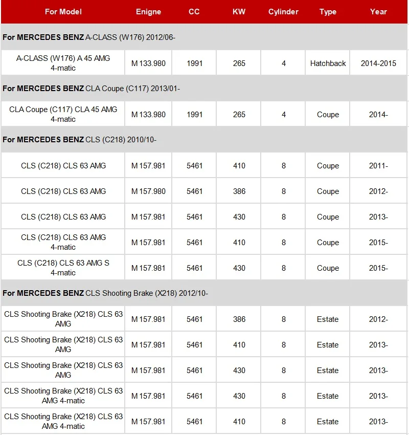 Для MERCEDES BENZ CLA Coupe (C117) CLA 45 AMG 4-matic Coupe 2014-