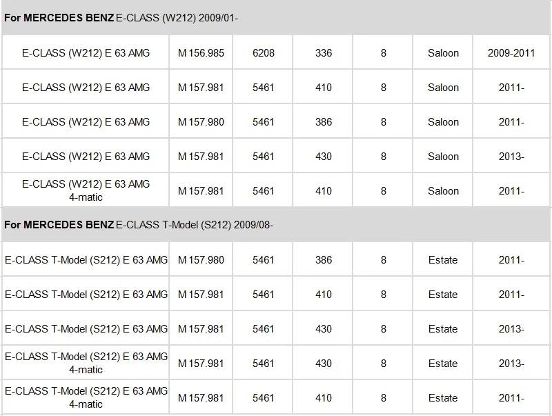 Для MERCEDES BENZ E-CLASS (W212) E 63 AMG 4-matic Saloon 2011-
