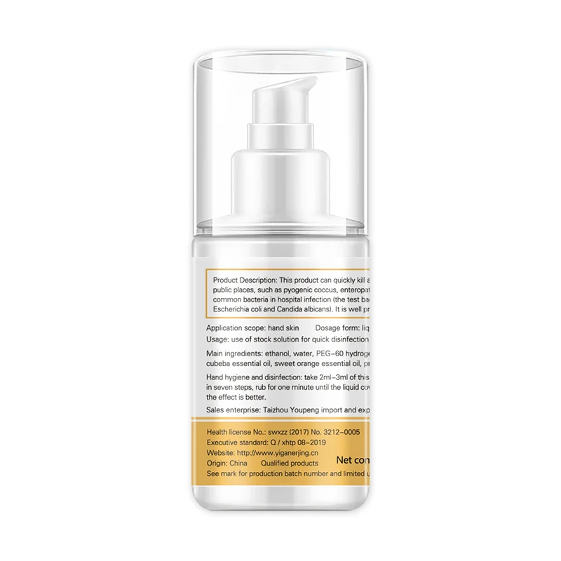 Наш продукт может быстро убить и подавить обычные бактерии в больницах и общественных местах, уникальная формула растительного соединения, природа мягкая, не стимулирует кожу, имеет аромат. Категория стерилизации: может быстро убить несколько общих микробов в общественных местах больниц. Область применения: кожа рук Основные ингредиенты: 70% этанол, вода, peg-60 касторовое масло, масло кубебы, сладкое апельсиновое масло, пропиленгликоль. Применение: Нанесите 2-3 мл этого продукта на руки. Следуйте семиступенчатой технике стирки и протрите жидкость на поверхности кожи рук в течение одной минуты. Повторите дважды для хорошего эффекта.