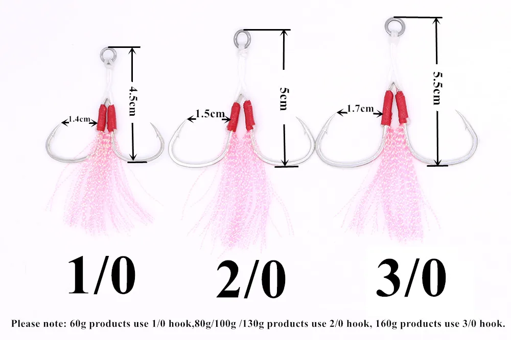 Пункт конкретные Цвет: серебристый, синий, розовый, желтый, зеленый, красный Вес Джига: 60 г 80 г 100 г 130 г 160 г Джиг Длина: 9,5 см/10 см; Обувь на высоком каблуке 11 см, на высоком каблуке 12 см, 13 см Hook No:1/0 2/0 3/0 Посылка: ПВХ-пакеты Пожалуйста, обратите внимание: 60 г продуктов используют 1/0 крючка, 80 г/100 г/130 г продуктов использовать 2/0 крючка, 160 г продуктов использовать 3/0 крючка.