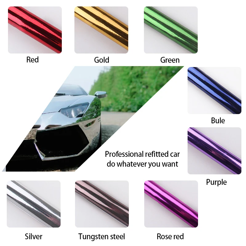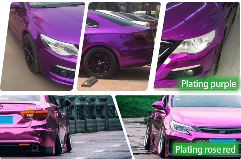 Высококачественная гальванизированная пленка для автомобиля, меняющая цвет, наклейка для автомобиля Материал: ПВХ Характеристики: 15/20 / 30x152 см, 50 / 60x150 см, 50x200 см Рисунок: однотонный Цвет: золотой, серебряный, синий, красный, розово-красный, зеленый, фиолетовый, Вольфрамовая сталь Серый
